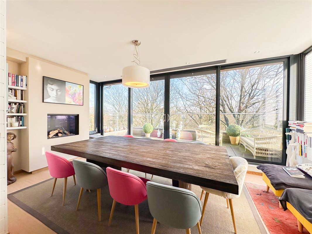 Une vaste salle à manger baignée de lumière, s'ouvrant sur une terrasse bien exposée, idéale pour les repas en plein air