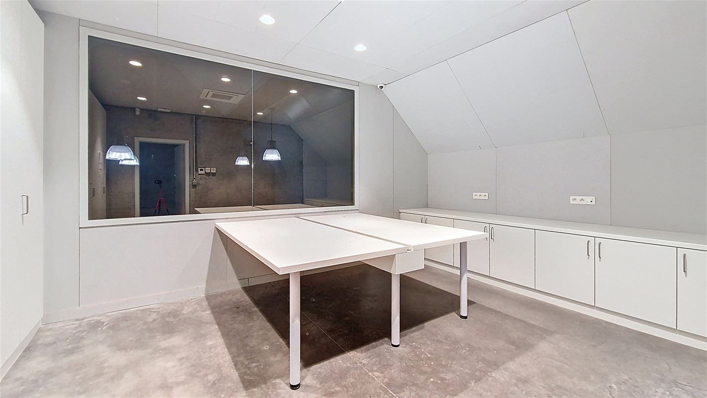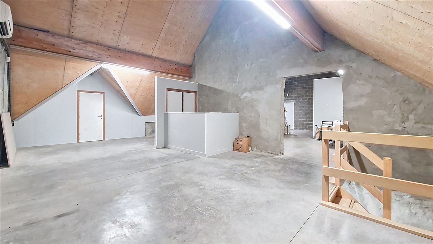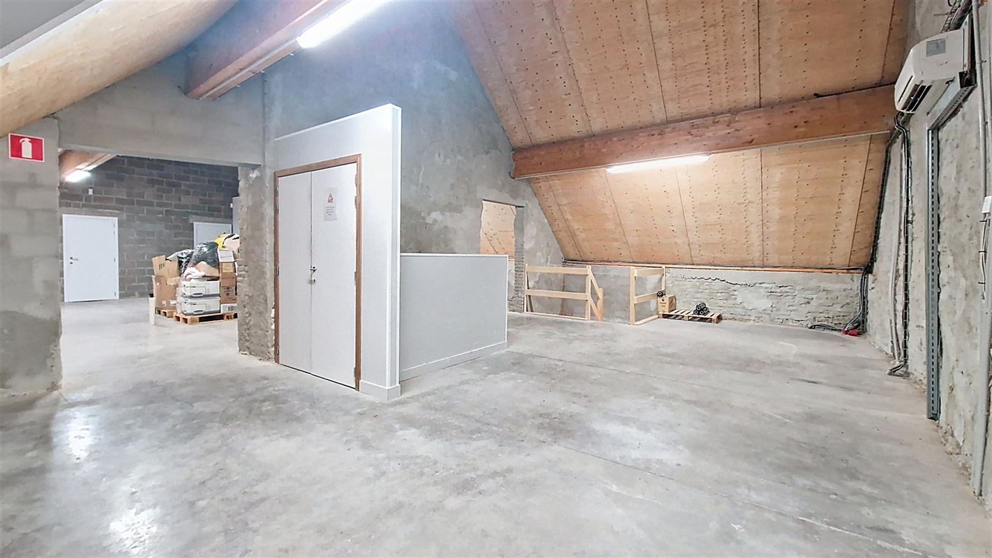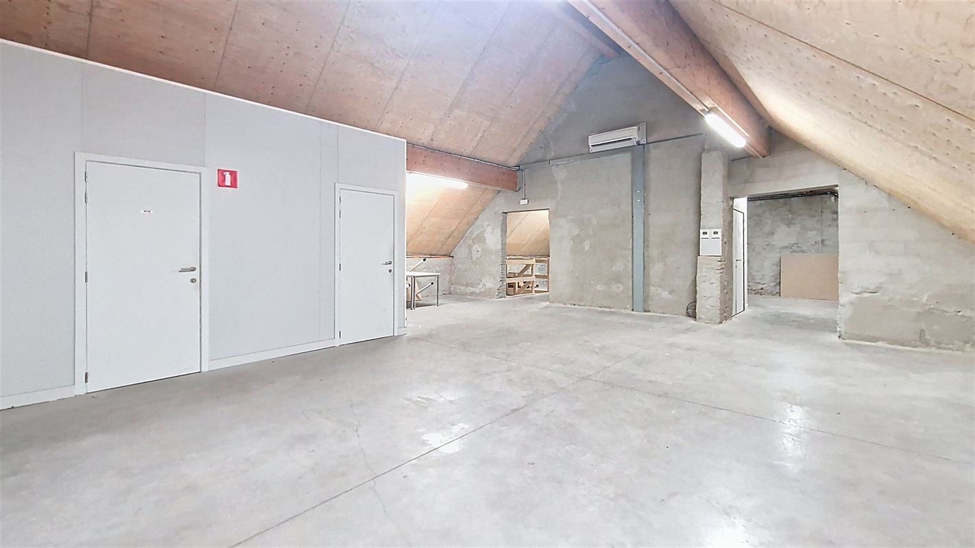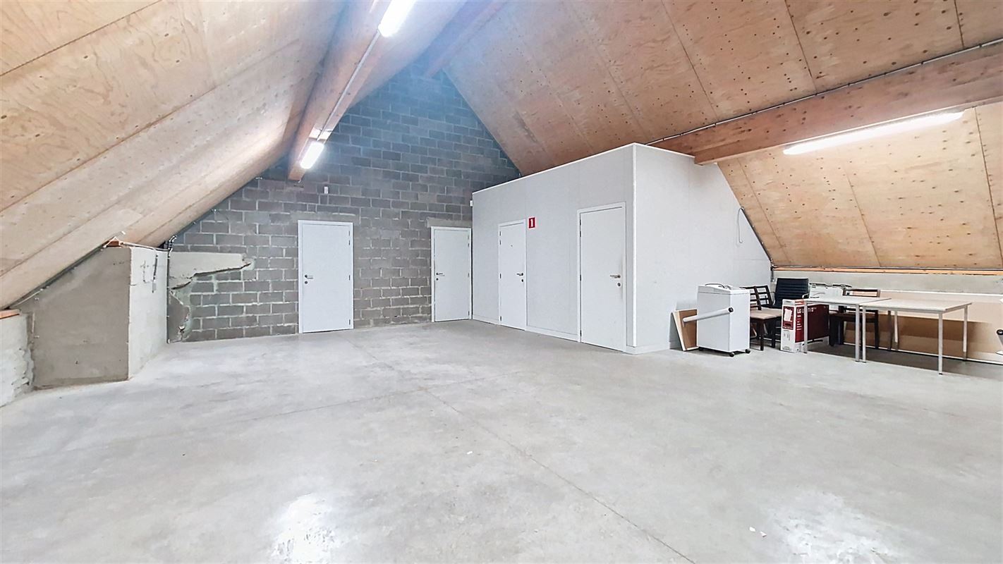 A l’étage : une grande pièce de 121 m² servant également d’espace de stockage avec un accès monte-charges, un grand bureau de 20 m² avec vitre teintée, un second petit bureau, espace cuisine semi-équipée, local technique et pièce comprenant un générateur mazout (alternative en cas de coupure de courant avec une autonomie de 2 heures).