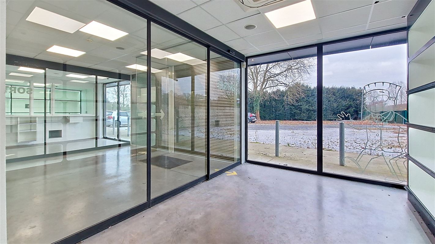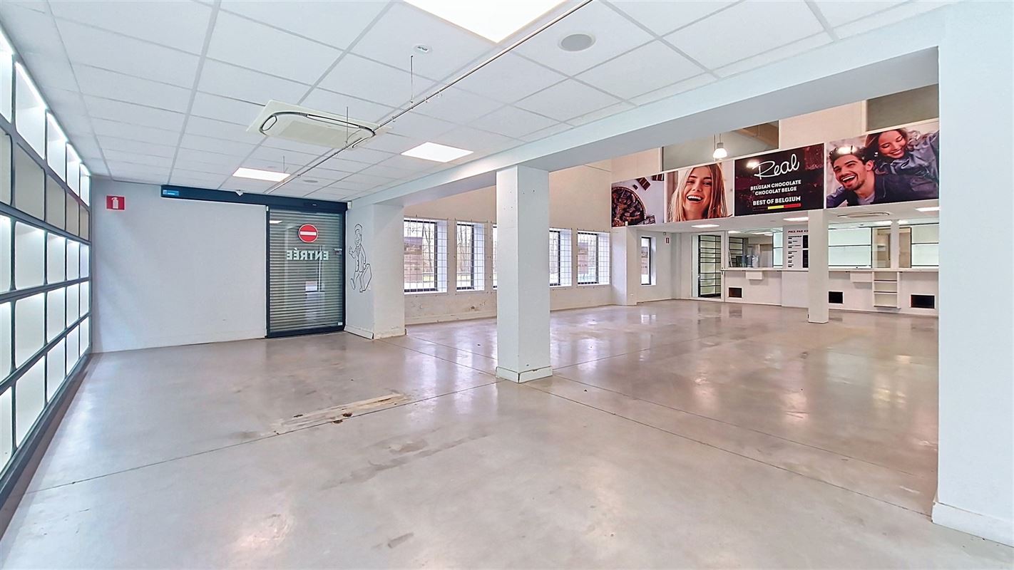 Celui-ci pourra accueillir tous types d’activités et se compose actuellement comme suit : au rez-de-chaussée : Sas d’entrée avec portes automatiques vers surface commerciale de +-180 m² avec un grand espace comptoir sécurisé et espace de stockage de +-100m², 2 toilettes "privées"