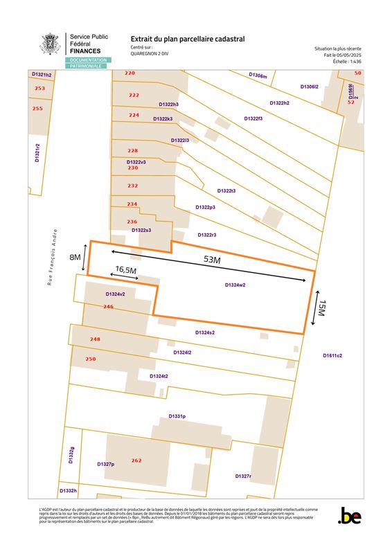 Beau terrain à bâtir situé dans une rue calme et proche des commodités, d’une contenance de 7,15 ares offrant une largeur en façade de 8 mètres et une profondeur de 52 mètres !