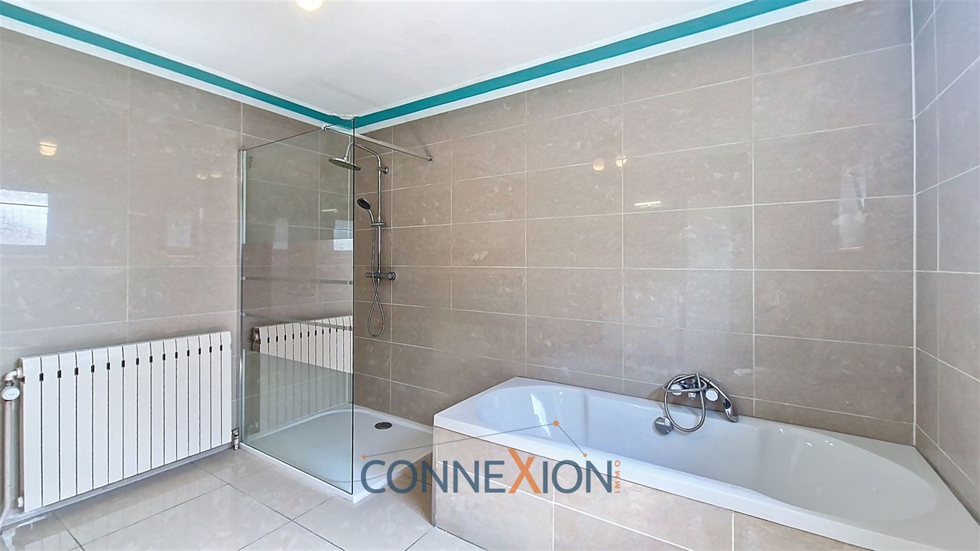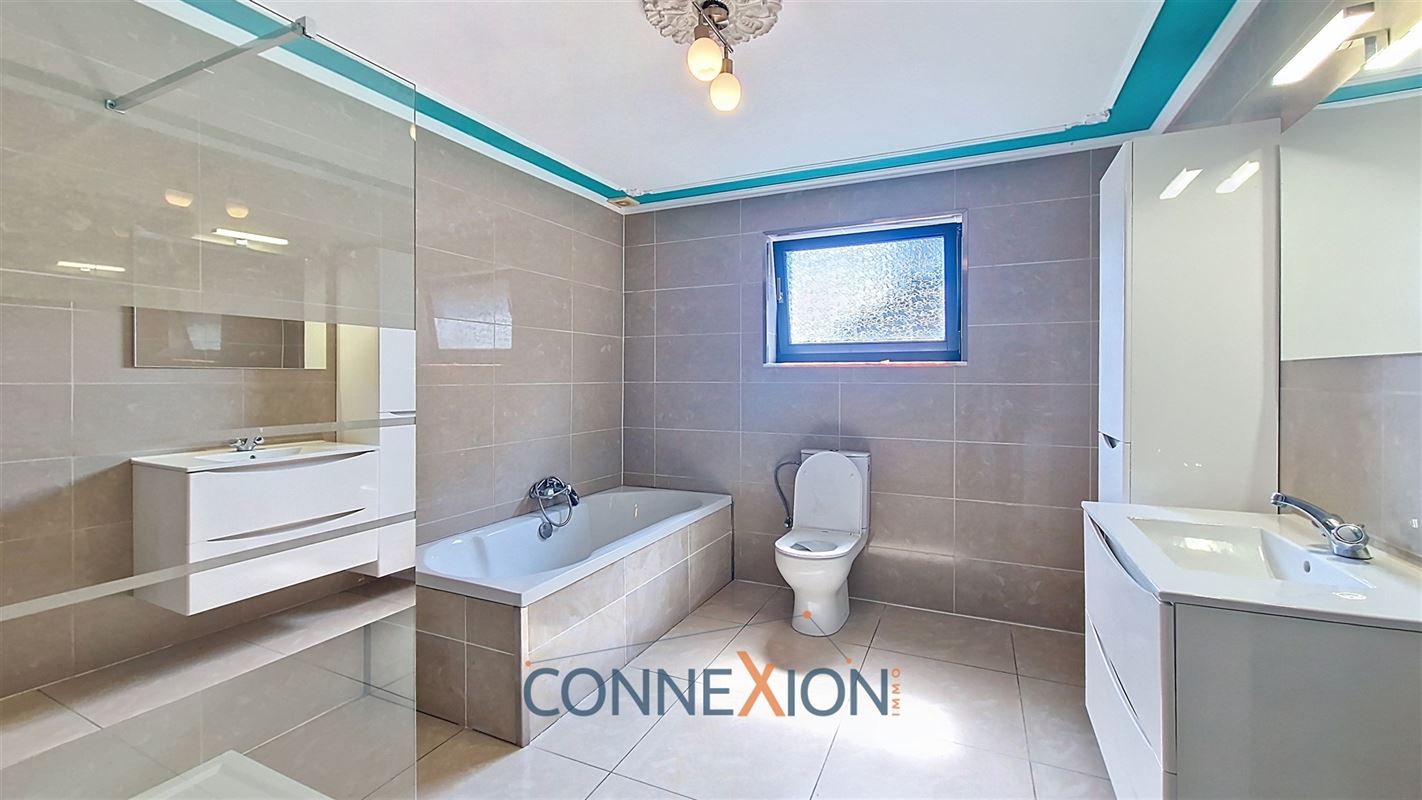 1er étage : hall de nuit, accès terrasse de +-13m² côté jardin, 3 chambres (17m², 17m² et 16,3m²) dont 2 avec terrasse, salle de bains (avec baignoire & douche et second wc).