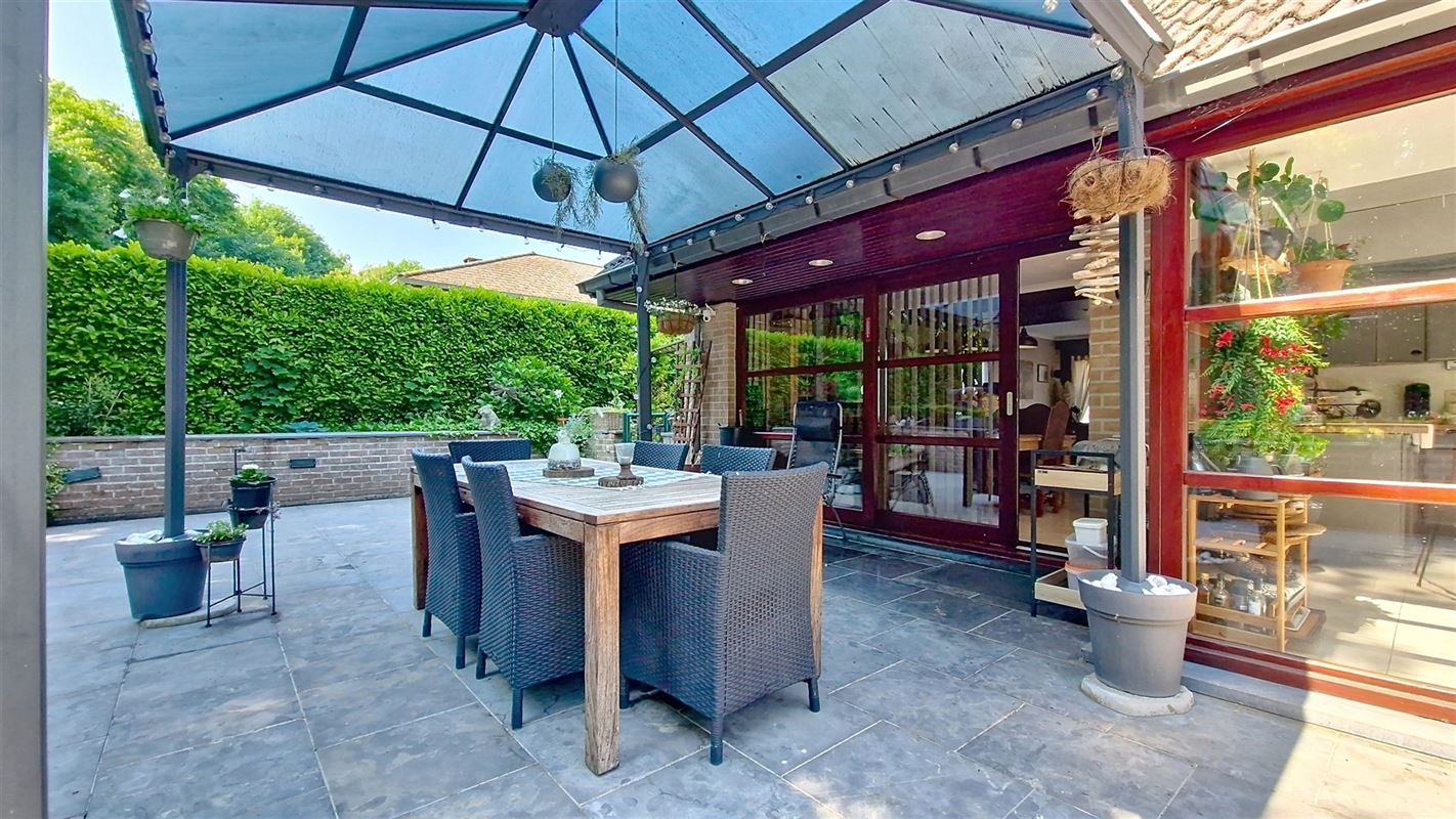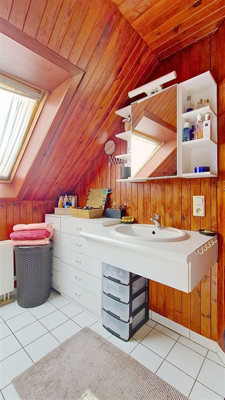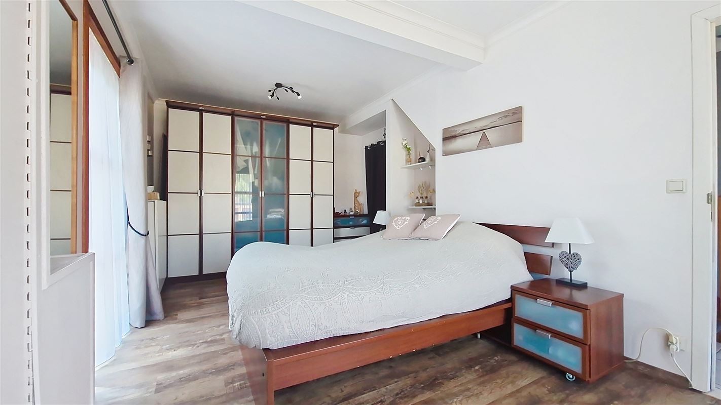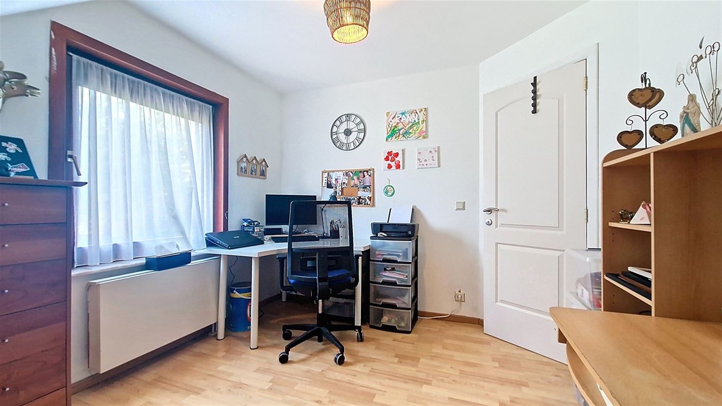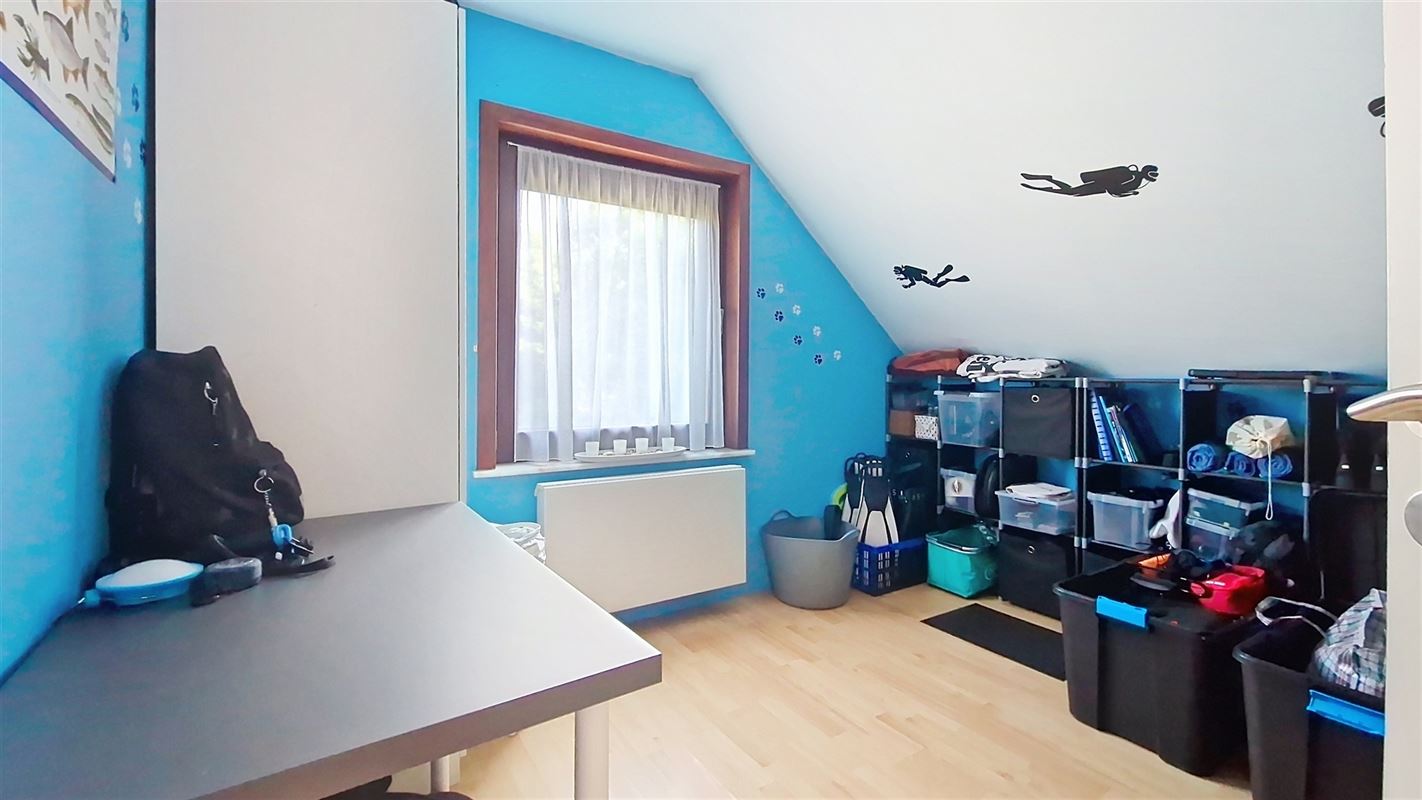 A l'étage, un hall de nuit, 4 chambres, salle de bains et wc séparé. A l'extérieur, vaste terrasse, spacieux jardin et abri de jardin.