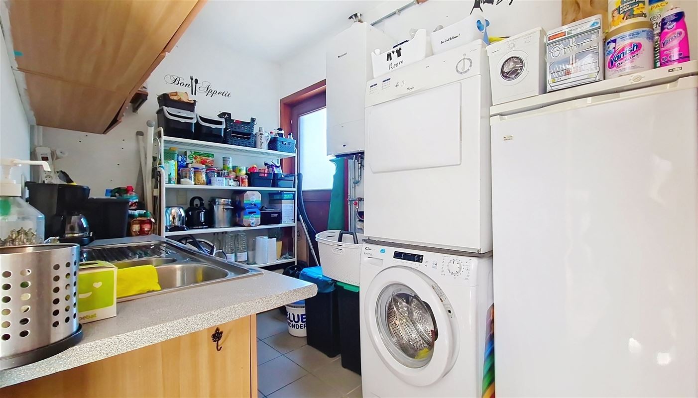 Elle se compose au RDC : d'un hall d’entrée, wc séparé, 1 chambre avec débarras/dressing, lumineux séjour avec baie vitrée et cheminée, cuisine équipée ouverte et buanderie.