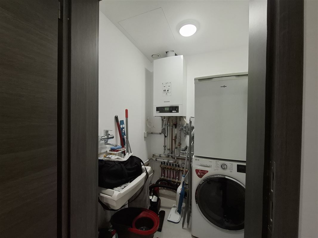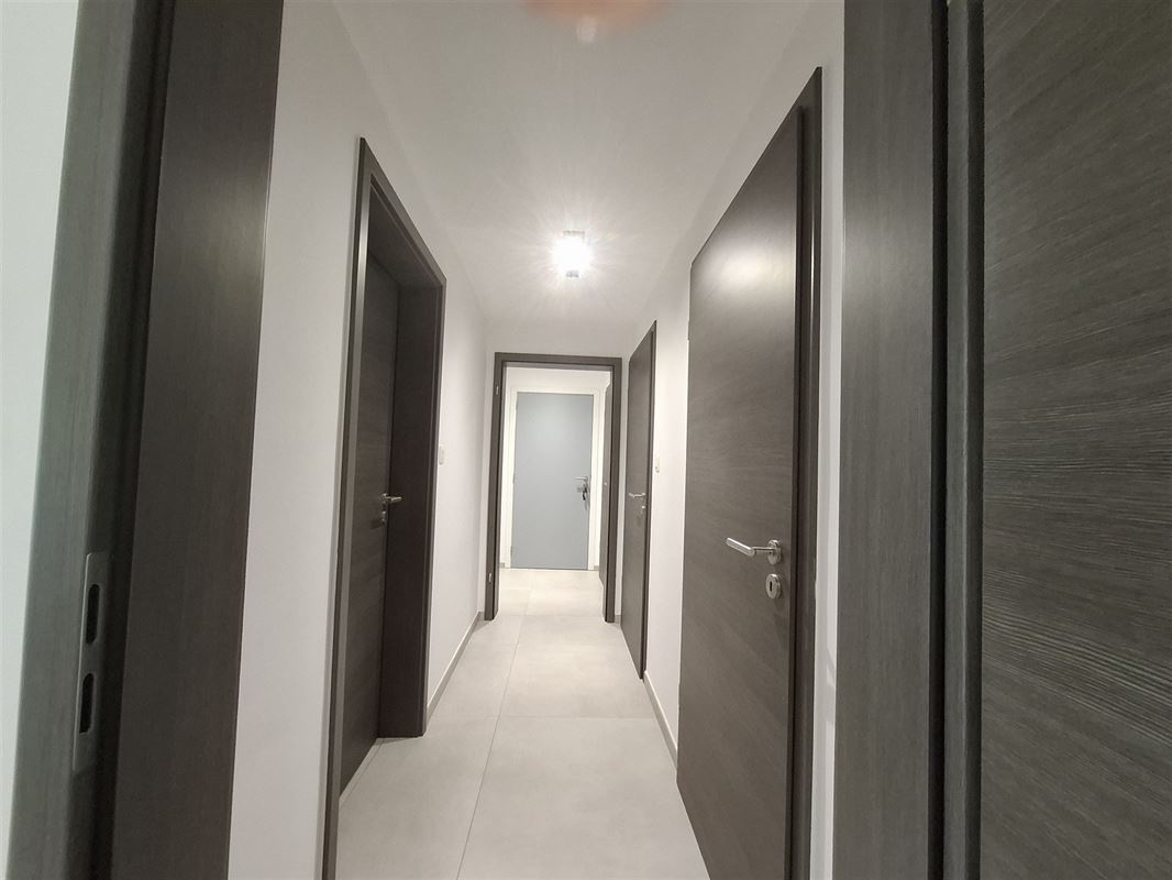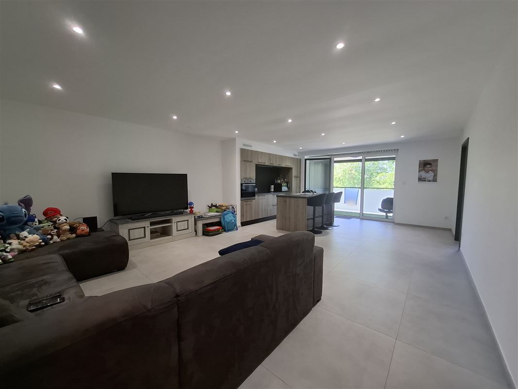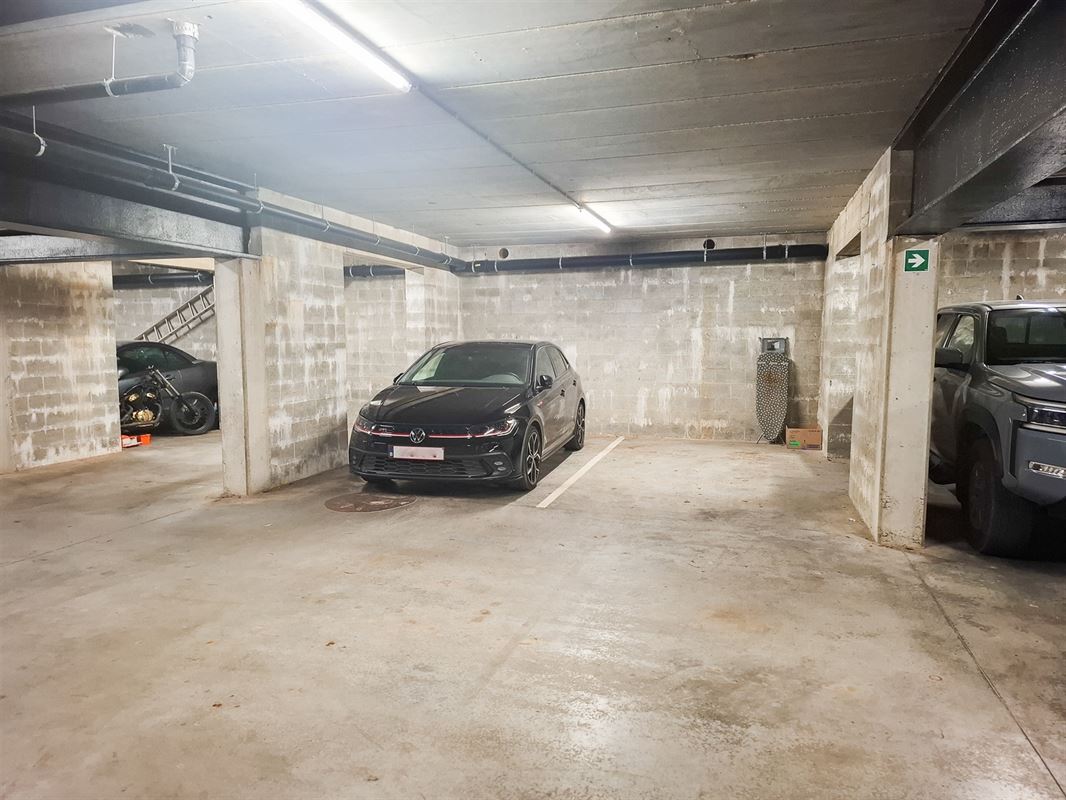 Cet appartement se compose : d'un hall d'entrée, une buanderie, une salle de bain, un wc, un living avec cuisine équipée ouverte, deux chambres, une cave et un emplacement de parking intérieur.