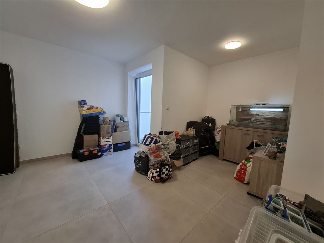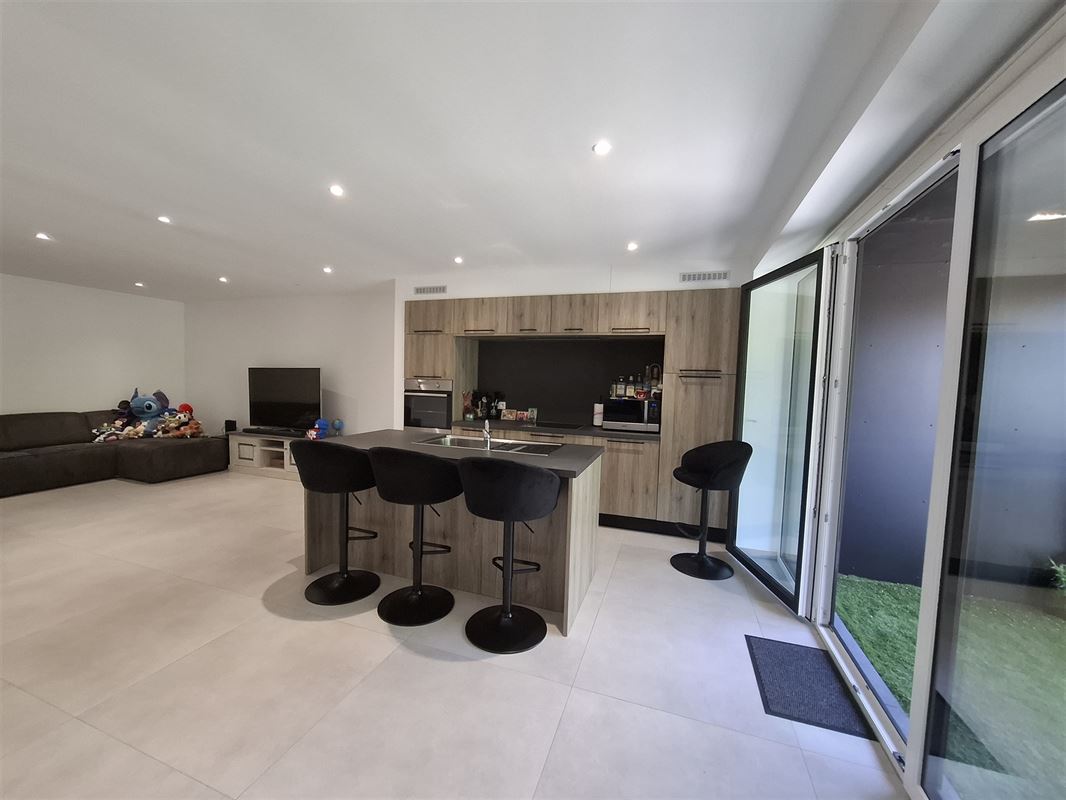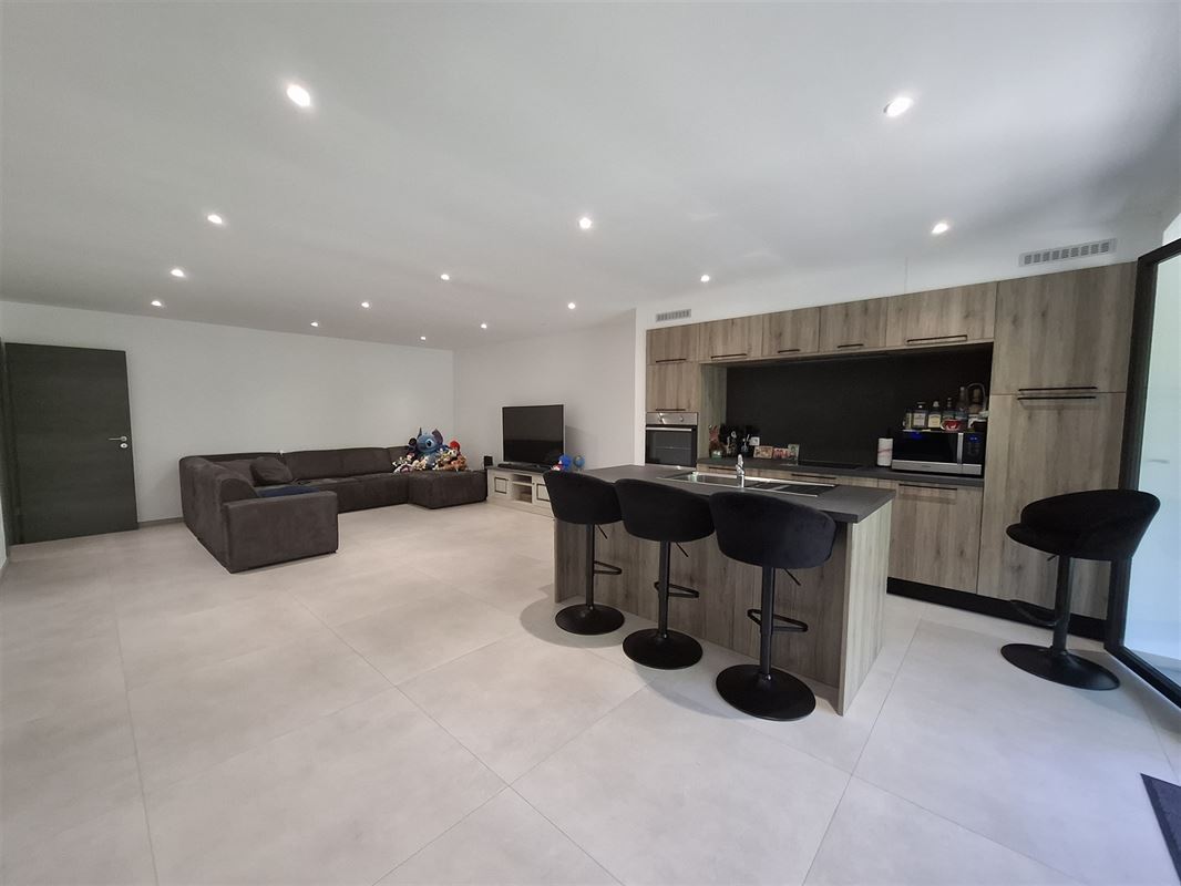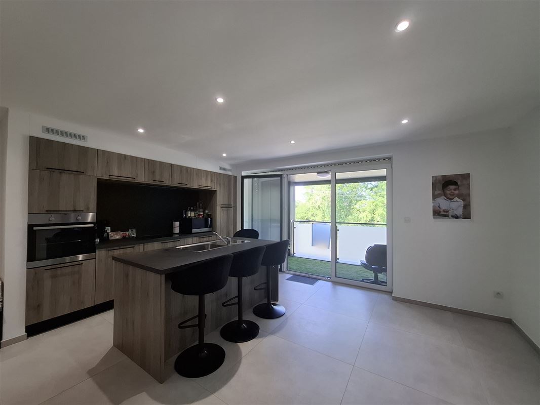 Cet appartement se compose : d'un hall d'entrée, une buanderie, une salle de bain, un wc, un living avec cuisine équipée ouverte, deux chambres, une cave et un emplacement de parking intérieur.