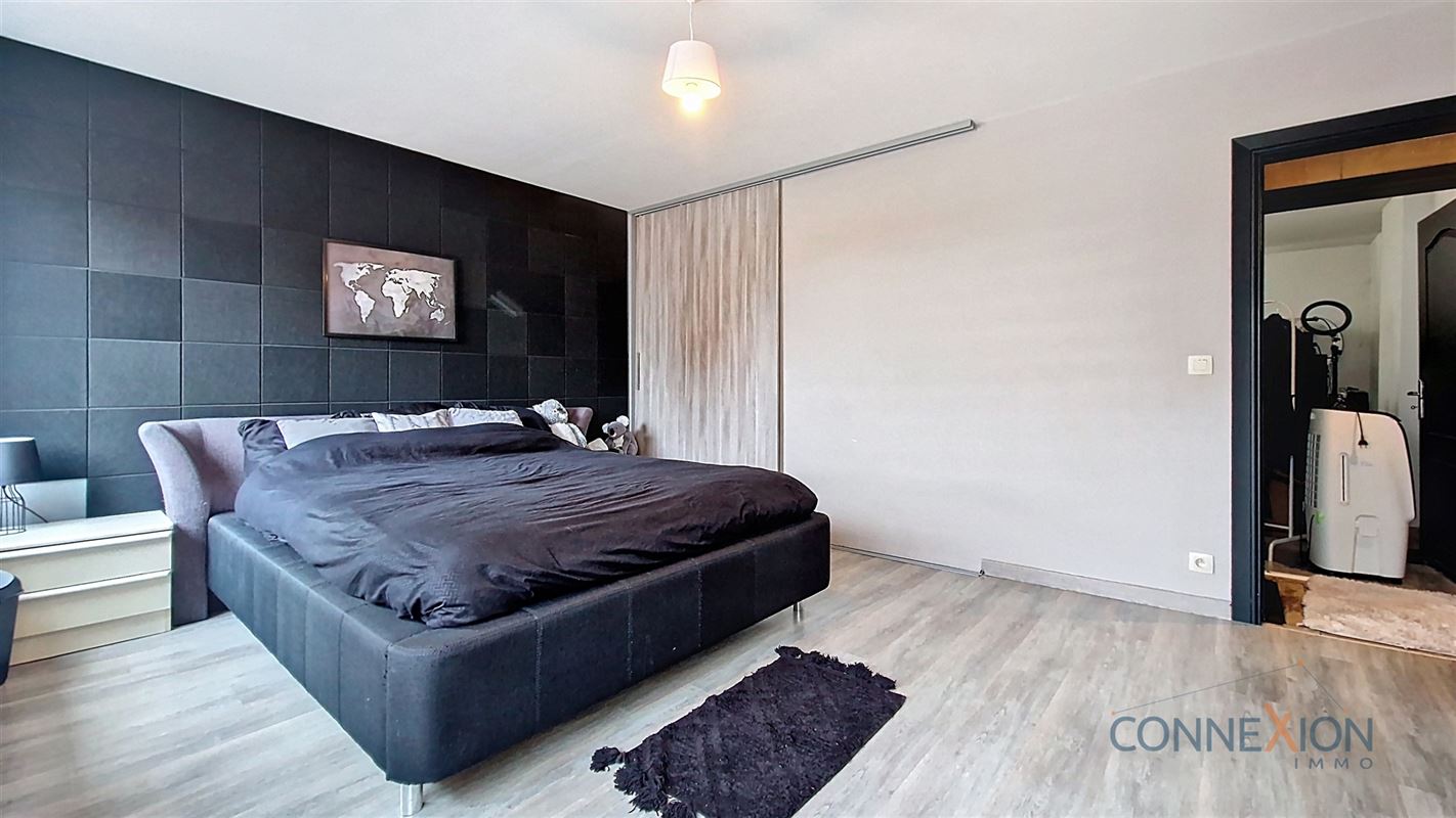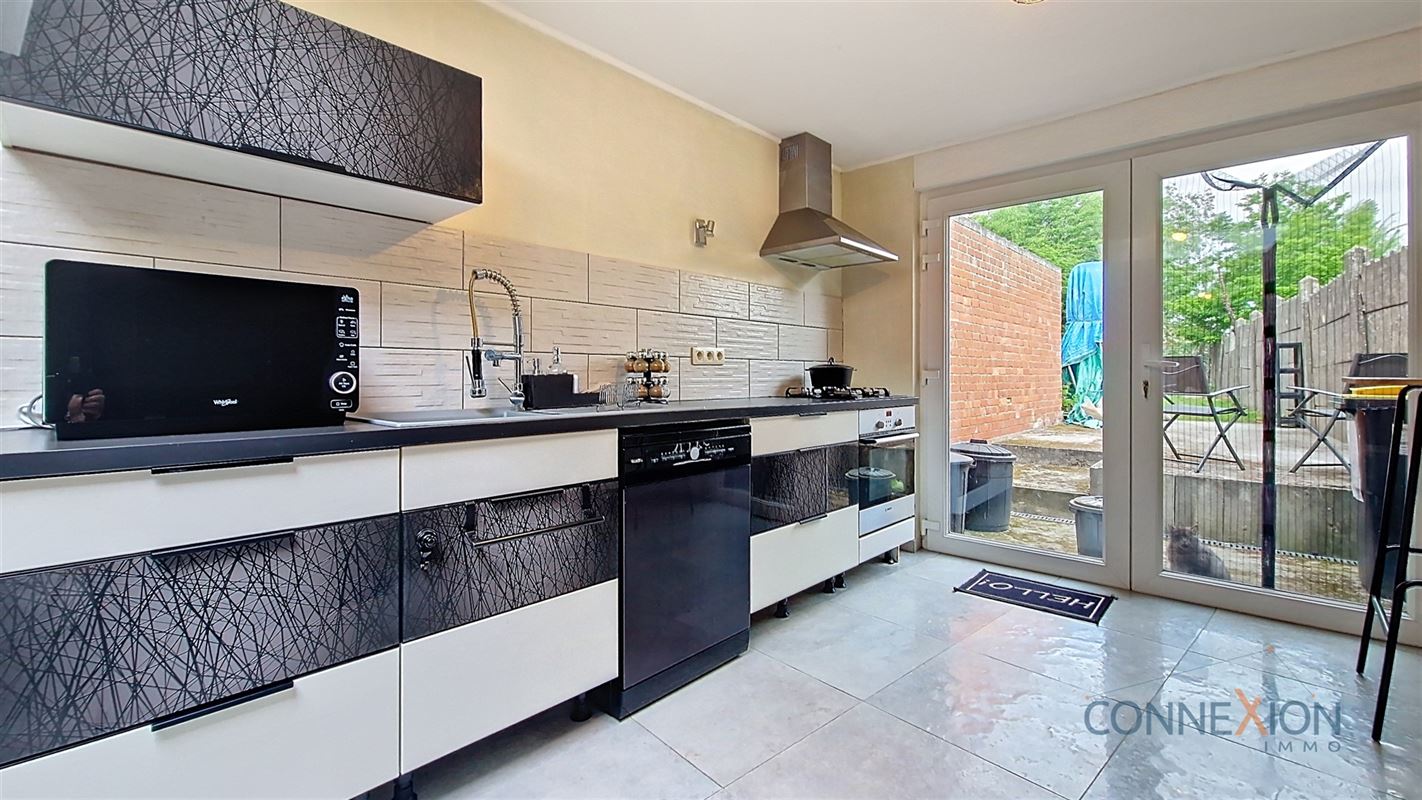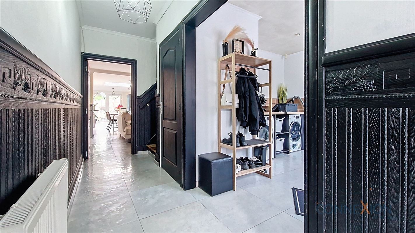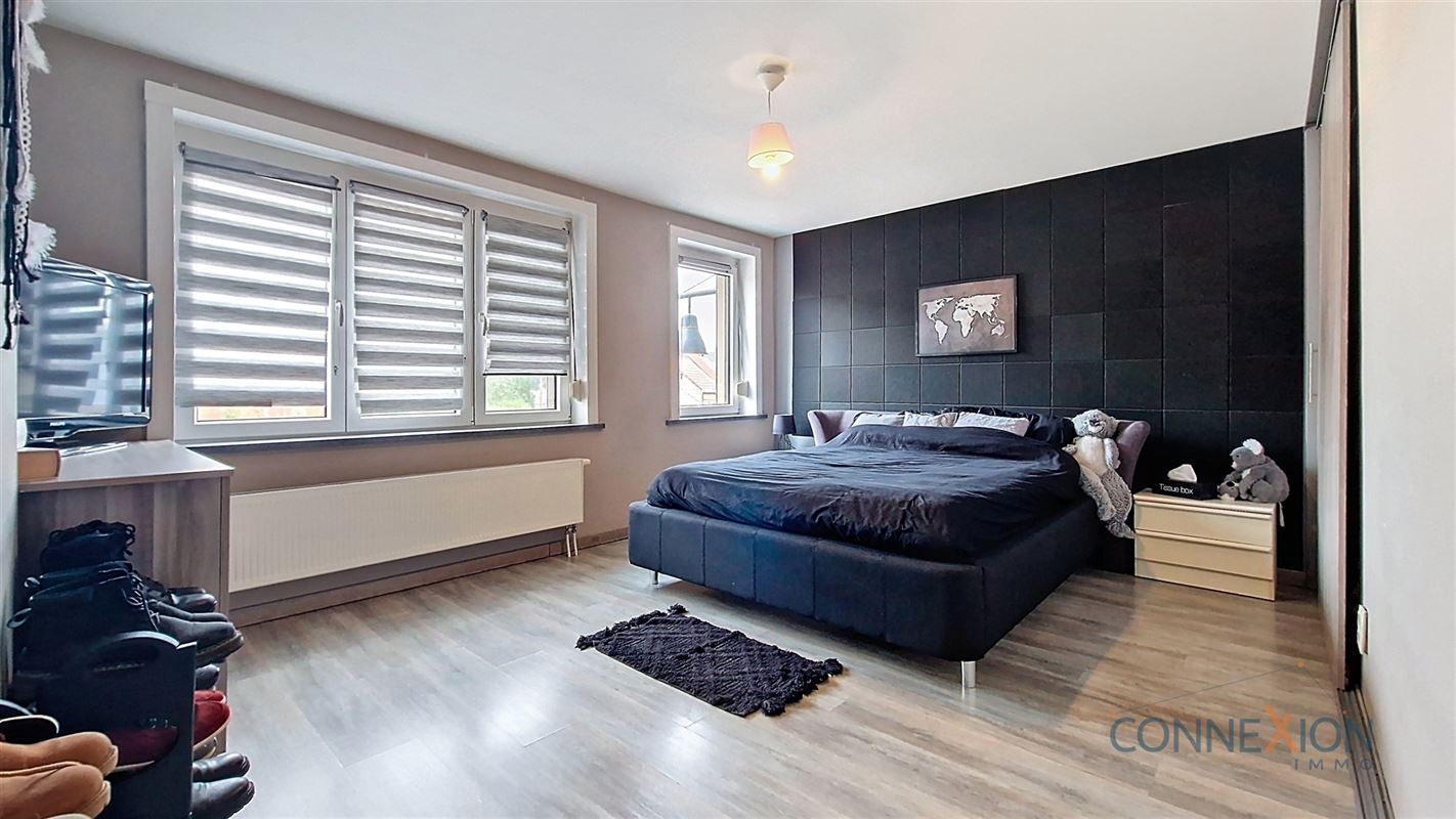 Comprend au rez de chaussée : hall d'entrée, pièce en façade (bureau ou chambre), wc invités, beau grand living avec sa cuisine équipée, cellier/chaufferie et salle de douches.