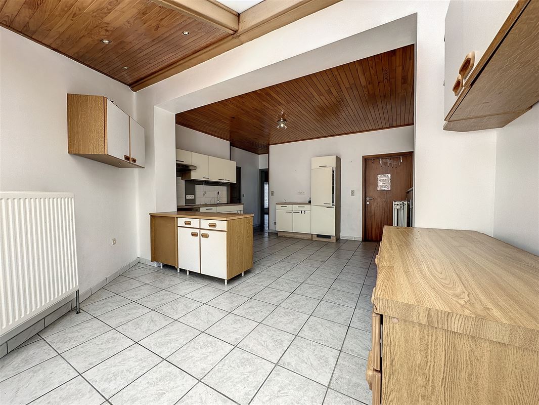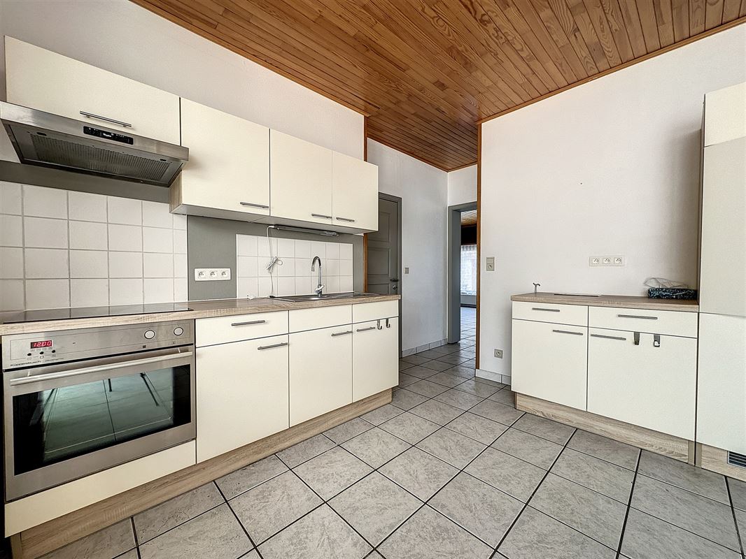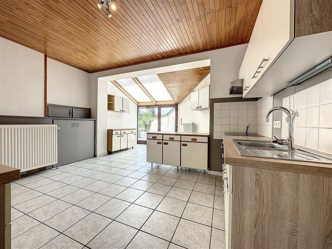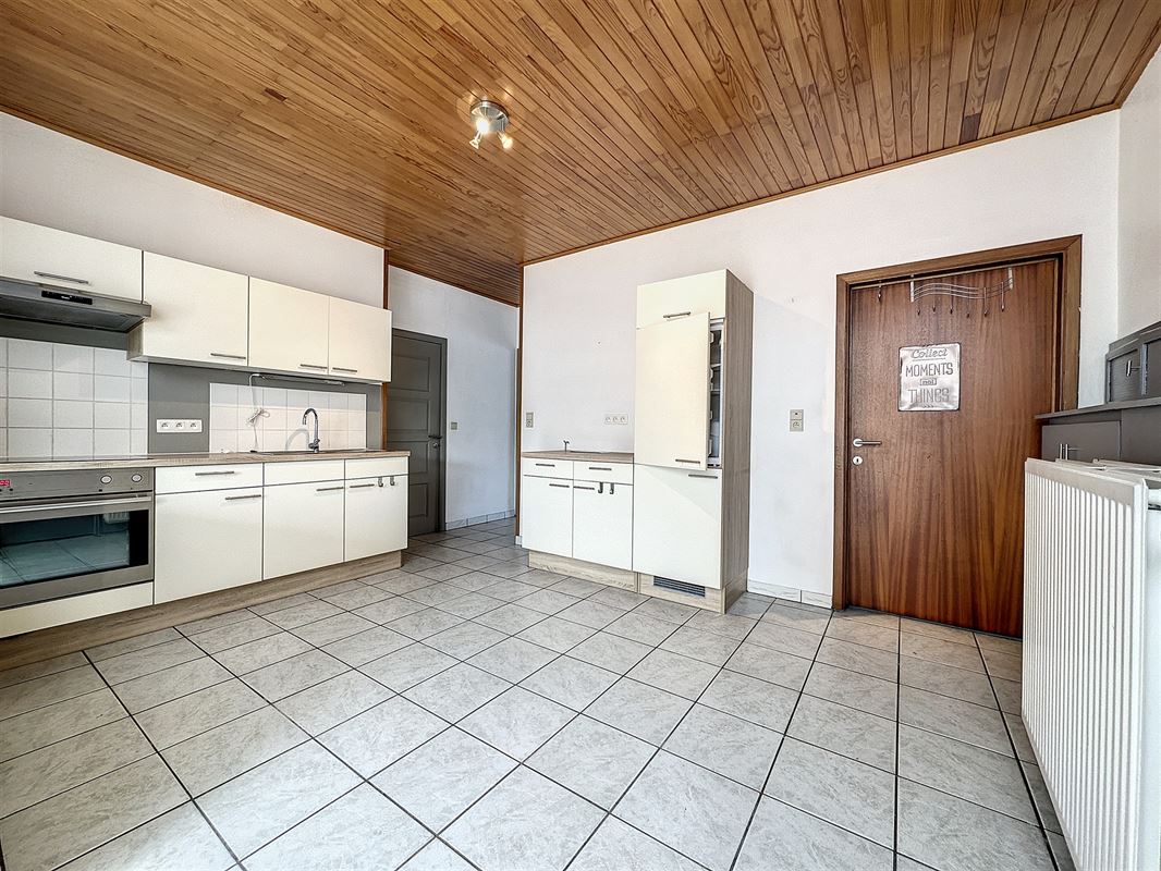 Celle-ci se compose : d'un living, une cuisine équipée, une buanderie, 1 wc, 3 chambres, une salle de bains à l'étage, une cave, un grenier, une terrasse et 1 jardin .