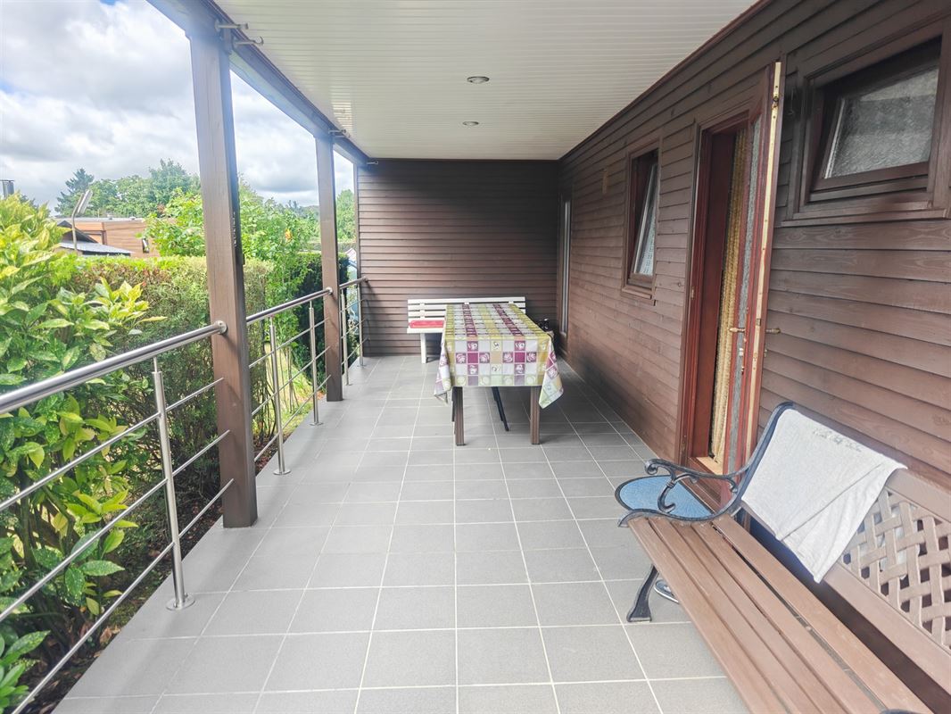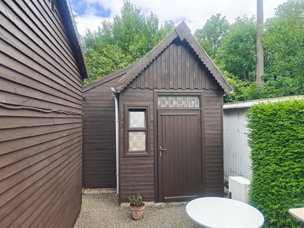 Composition : lumineux séjour de 18 m² avec coin cuisine ouverte, 3 chambres, wc, salle de douche, grande terrasse, abris de jardin, et parking extérieur privé. Le tout entièrement clôturé sur environ. Confort : Châssis DV bois, chauffe-eau au gaz (propane), barbecue et évier extérieur, 2 abris de jardin dont 1 fait office de buanderie, raccordé à l'égout.
