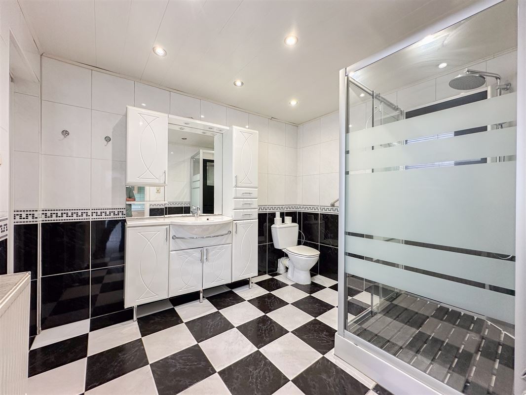 Equipement : châssis double vitrage alu et PVC + simple vitrage bois, chauffage central mazout, cour + jardin exposé O, cave de plus de 30 m².