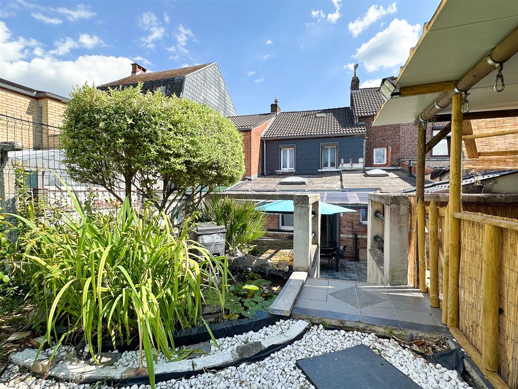 Equipements : châssis double vitrage pvc + volets, poêle à pellets, reliée aux égouts, beau jardin avec étang et abri de jardin