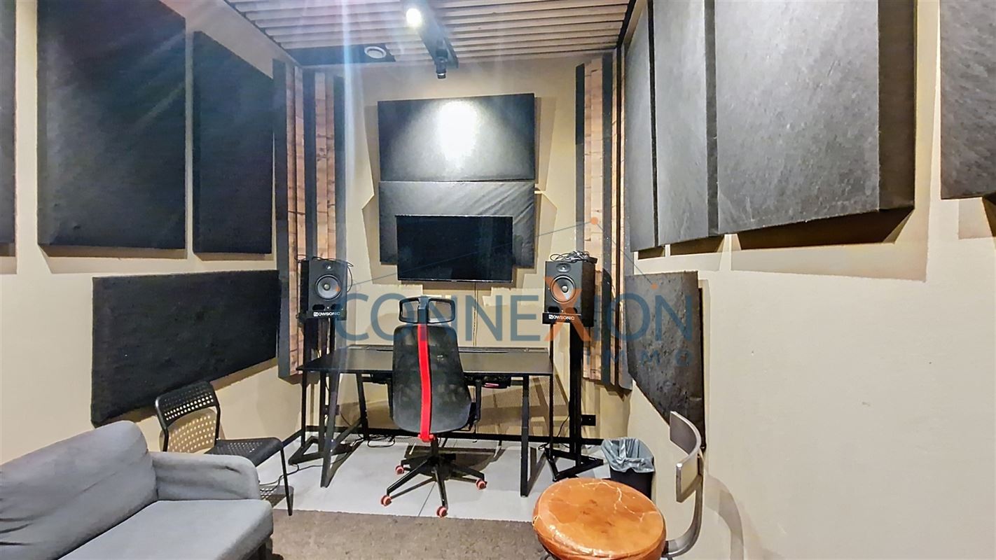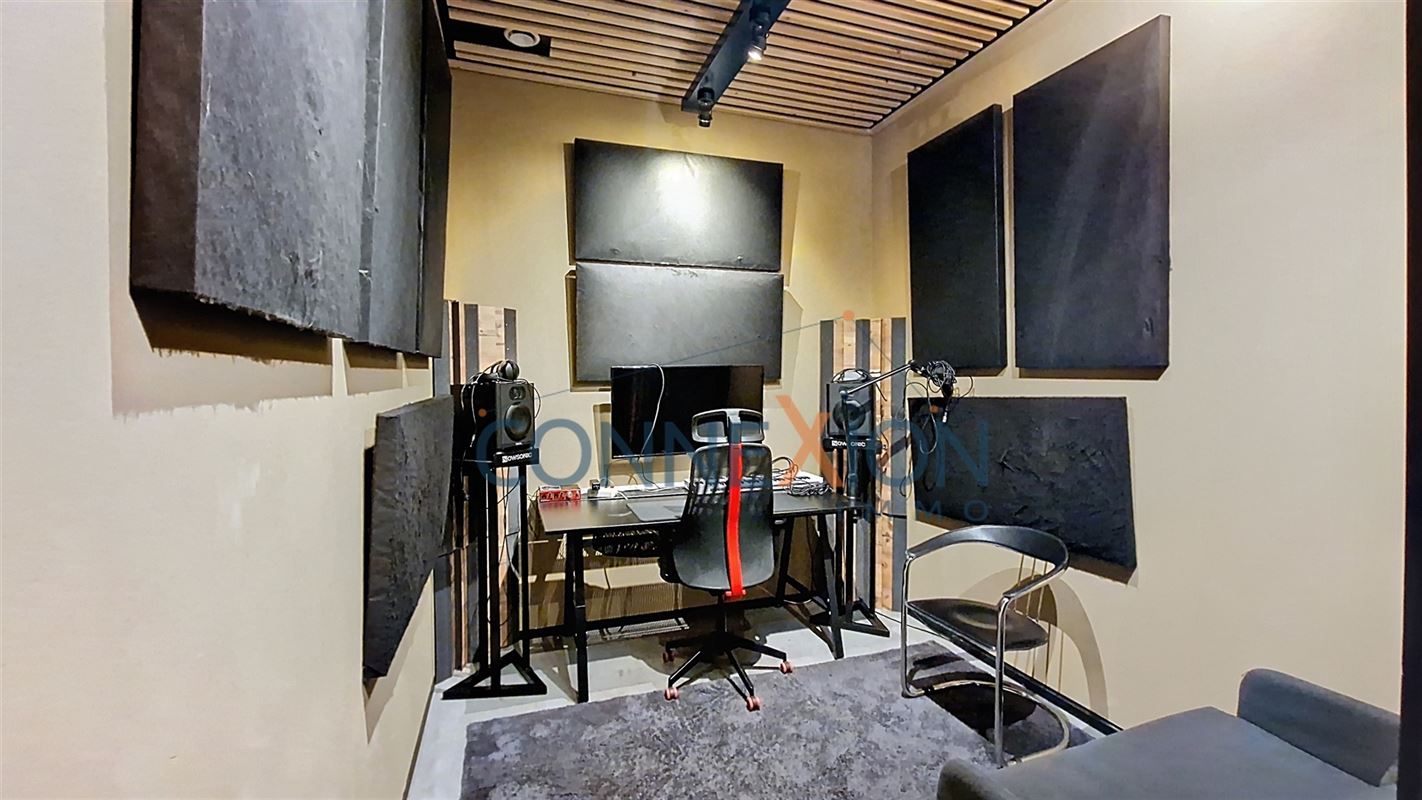 Rez de chaussée : 6 studios d’enregistrement indépendants (20 m² + 13 m² + 13 m² + 20 m² + 10,80 m² + 39 m²) , conçus avec des matériaux premium, hall d’accueil commun (38,60 m²), toilettes hommes et femmes (11 m²).