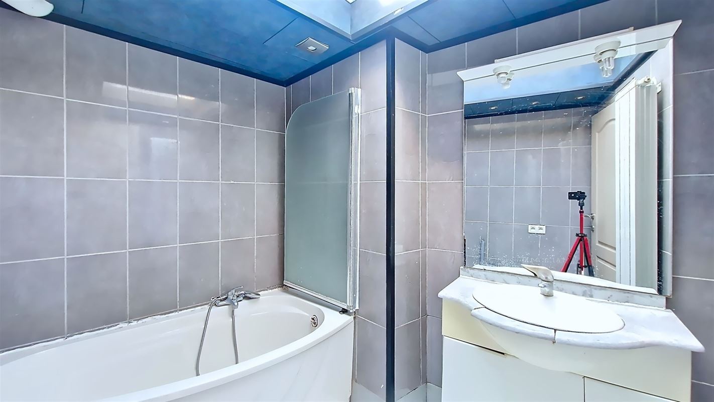 Vous trouverez également au rez, la salle de bains avec évier simple ainsi qu’une toilette séparée.