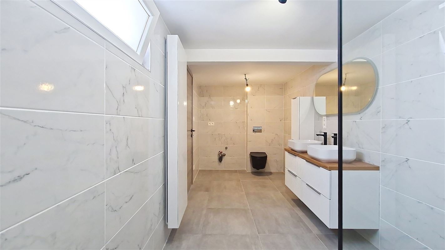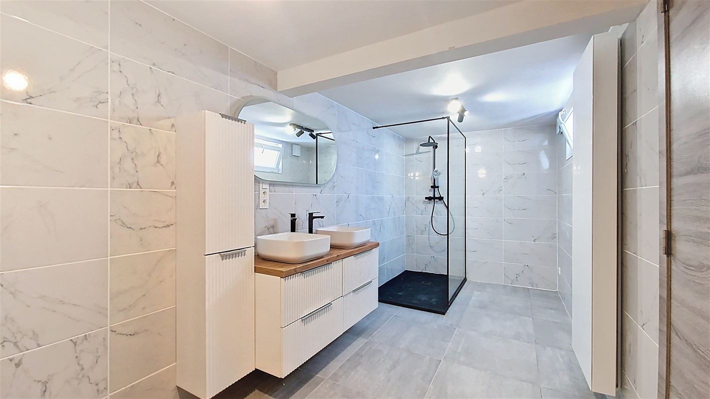 Comprend, au rez de chaussée : hall d'entrée, salon, salle à manger, superbe cuisine équipée moderne (neuve), salle de douches (wc suspendu, 2 éviers, meubles, douche à l'italienne, raccords pour machine à laver) et accès vers cour pour profiter de l'extérieur.
