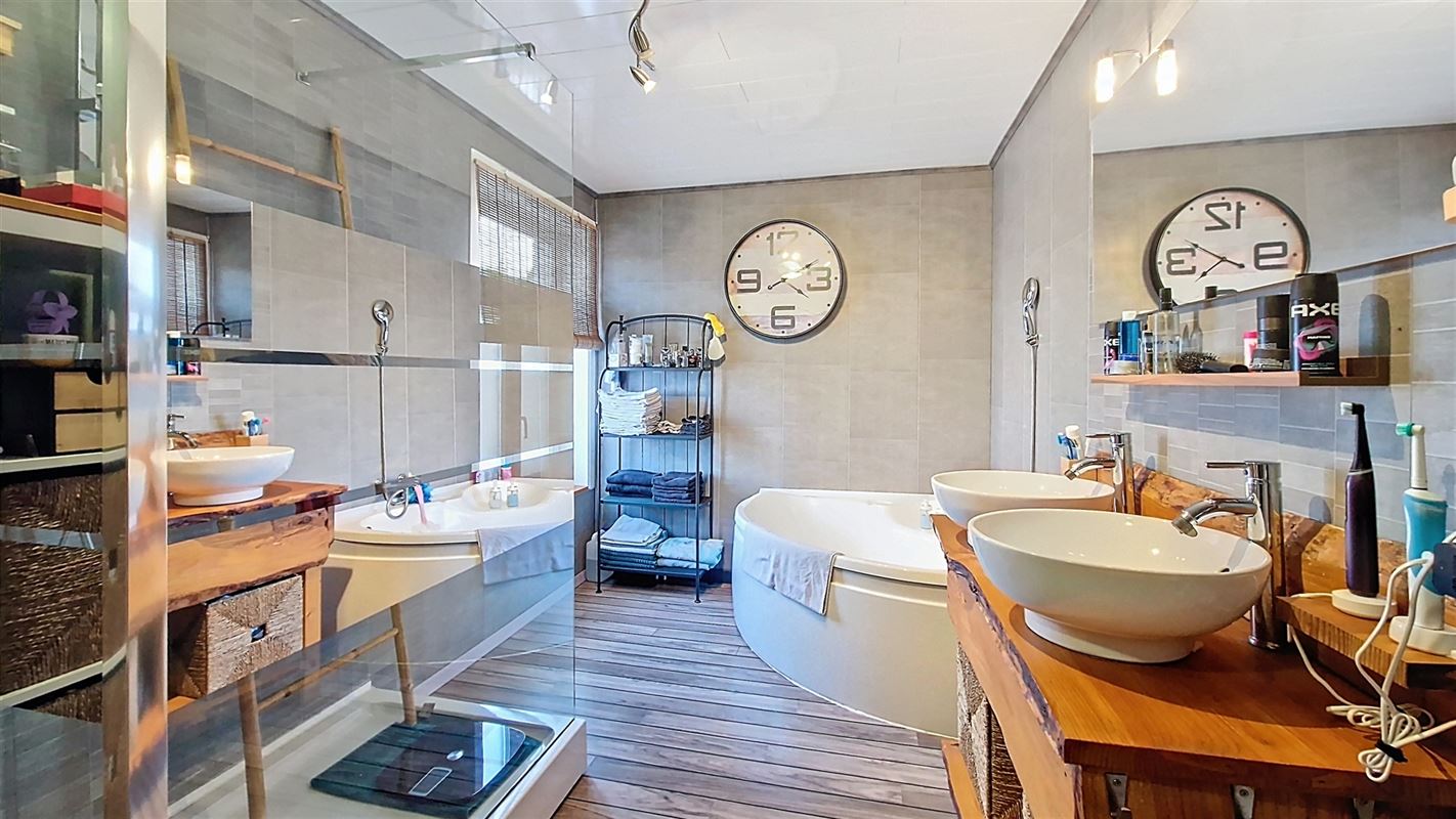 Les étages vous donnent accès à 3 chambres cosy et à une magnifique salle de bains avec baignoire, douche, wc et double lavabo.