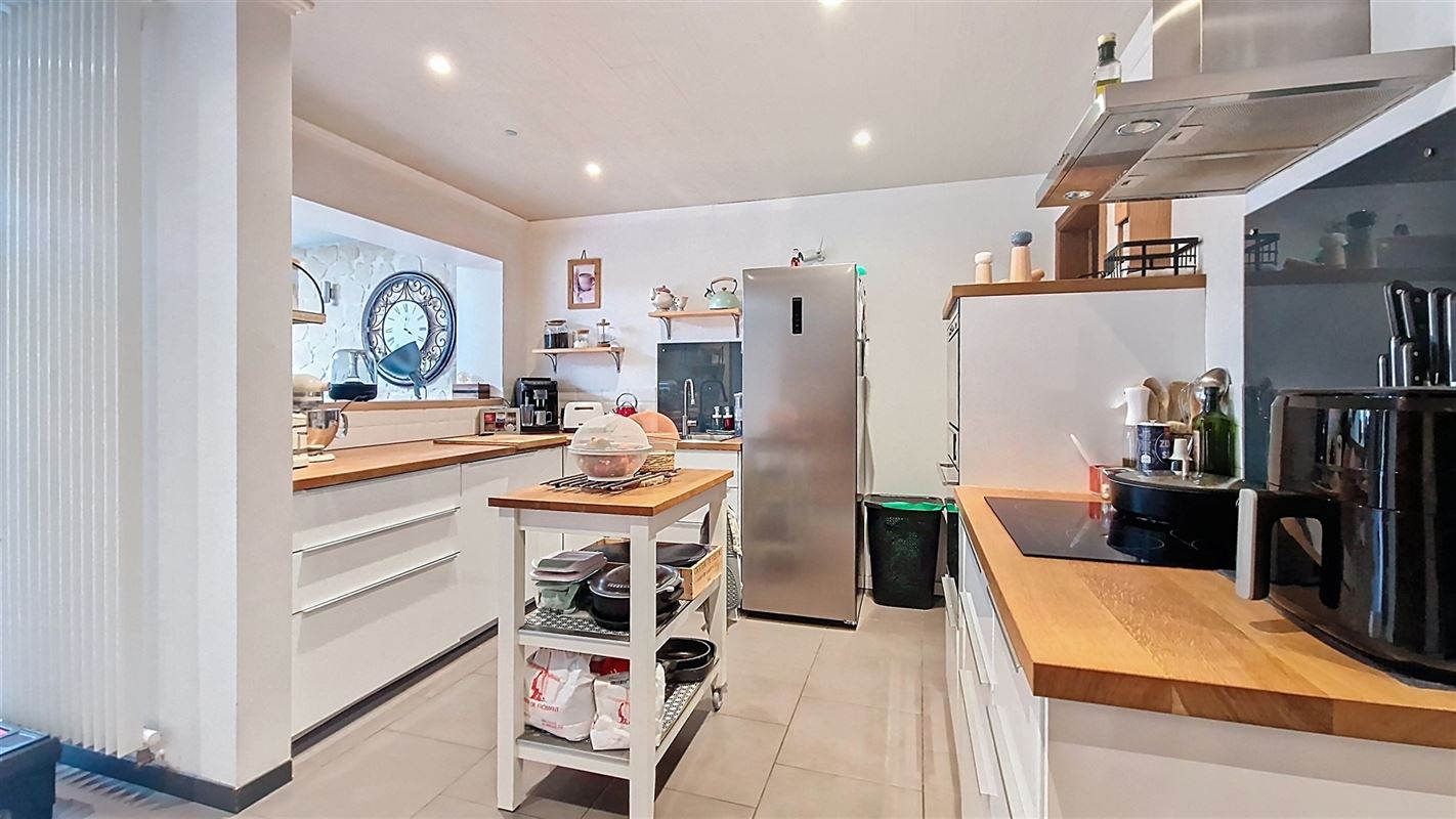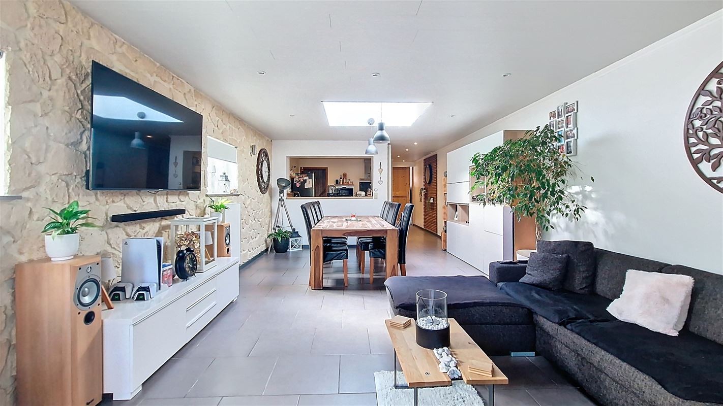 Au rez de chaussée, elle dispose d'un séjour lumineux de bonne taille, avec une cuisine équipée semi-ouverte, d'une buanderie, d'un wc séparé et d'une pièce polyvalente.
