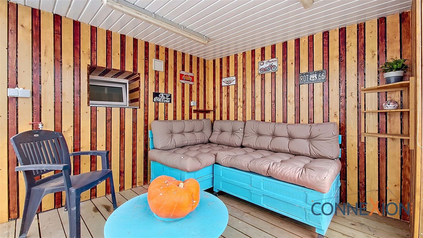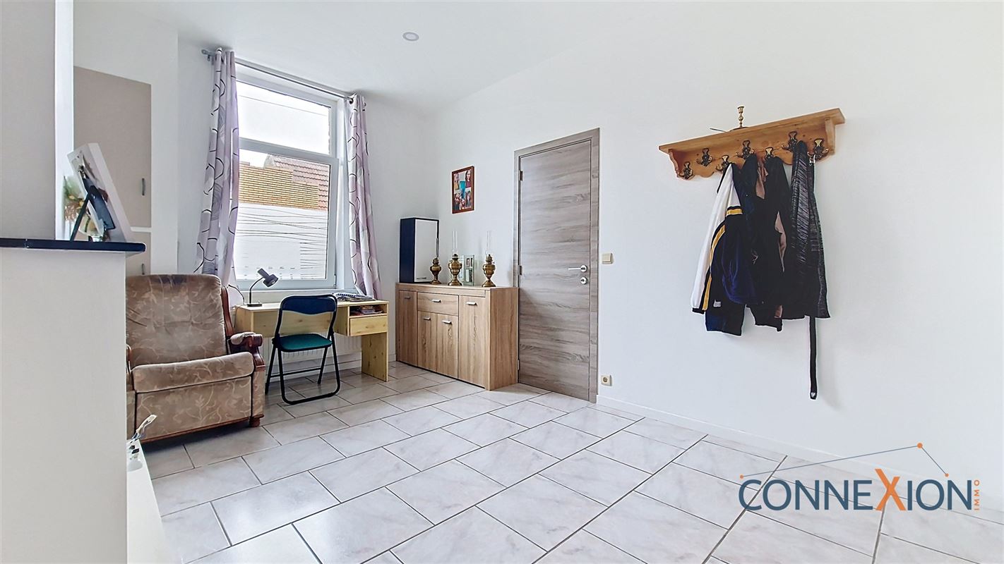 Se compose comme suit au rez : hall d’entrée, bureau (pouvant être réhabilité en chambre au besoin), agréable salon cosy avec feu au bois et cuisine semi équipée avec son espace salle à manger très lumineux.