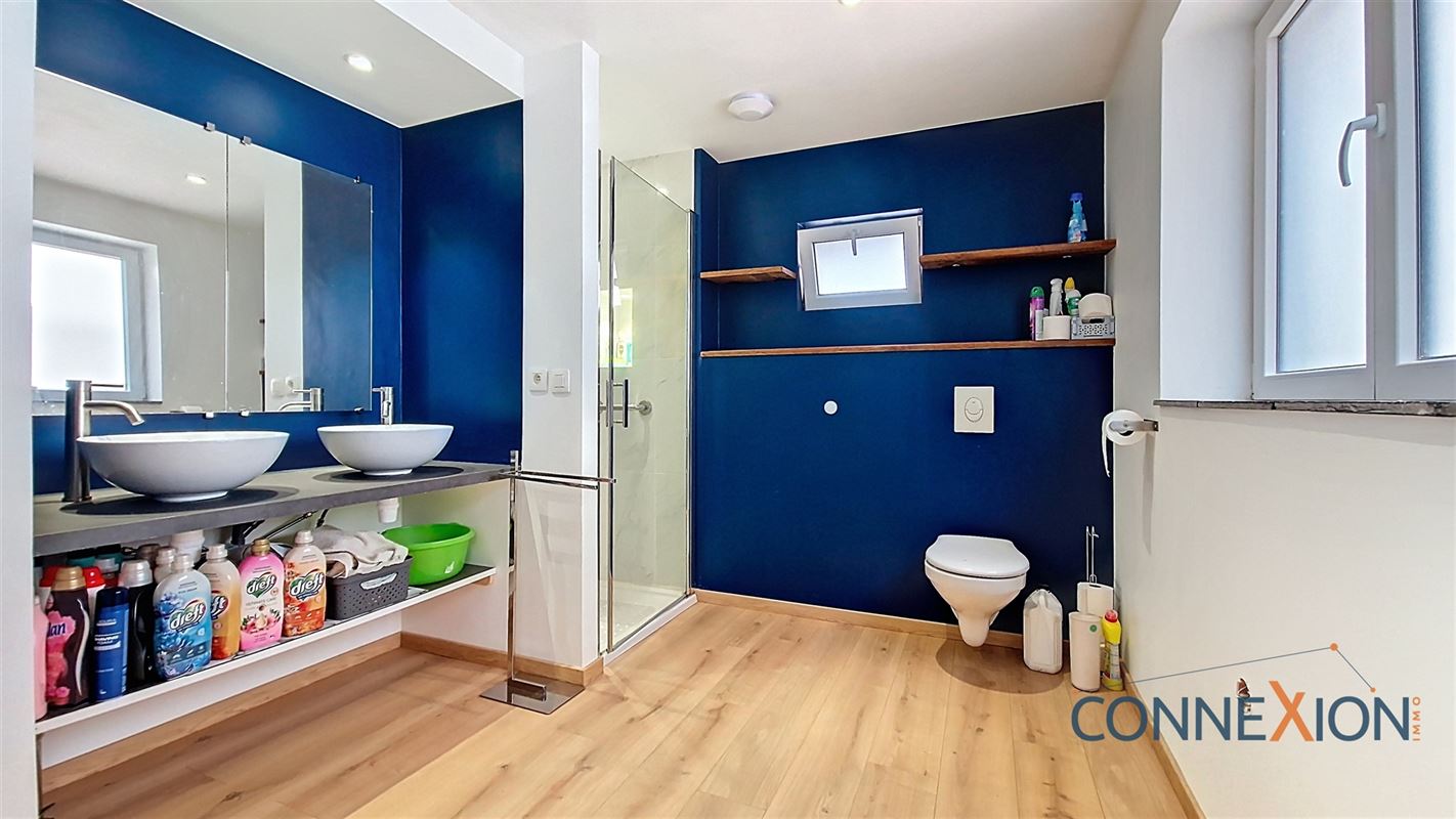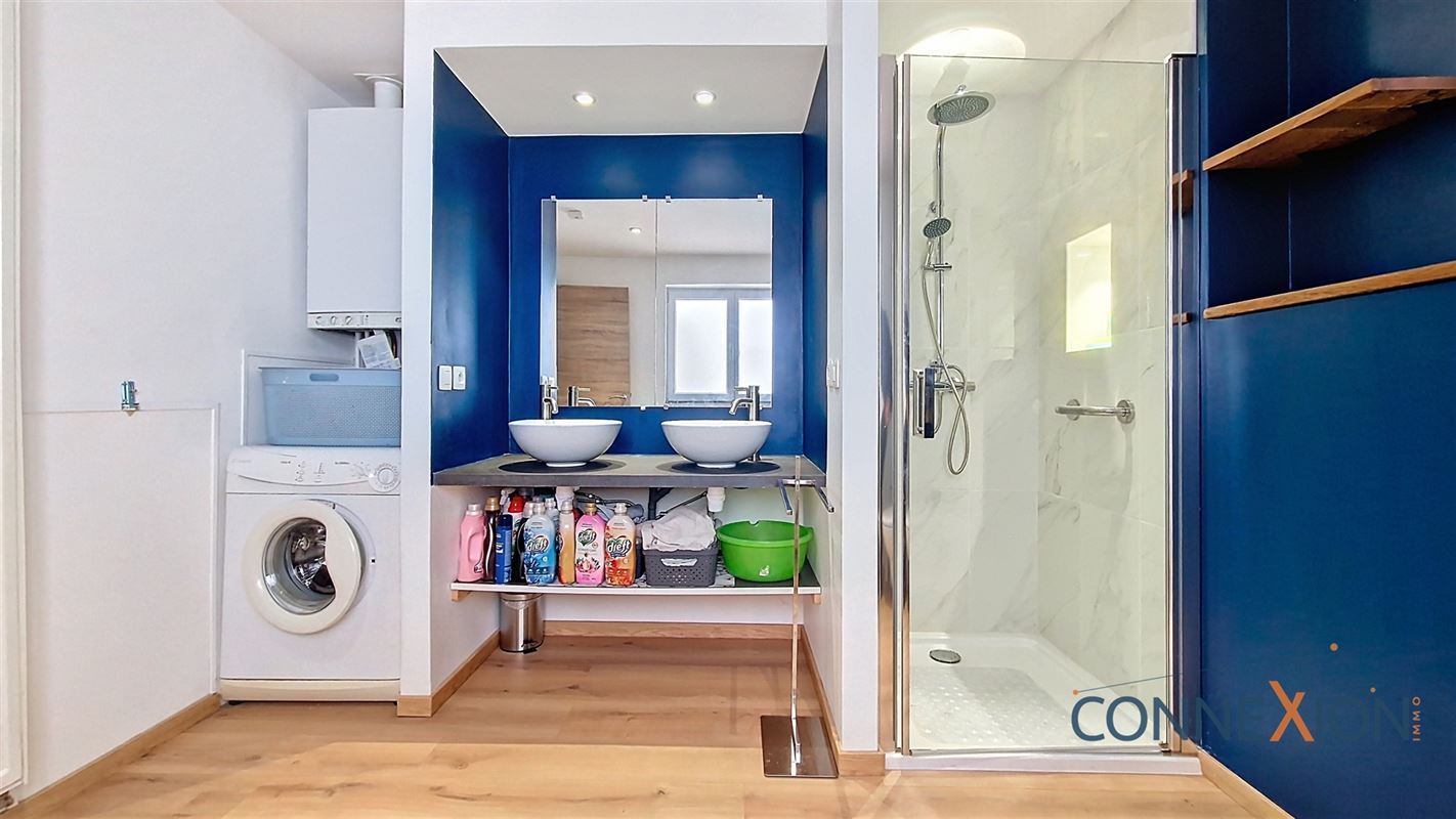 Egalement, salle de douche spacieuse (avec toilette, meuble lavabo, douche) et espace buanderie.