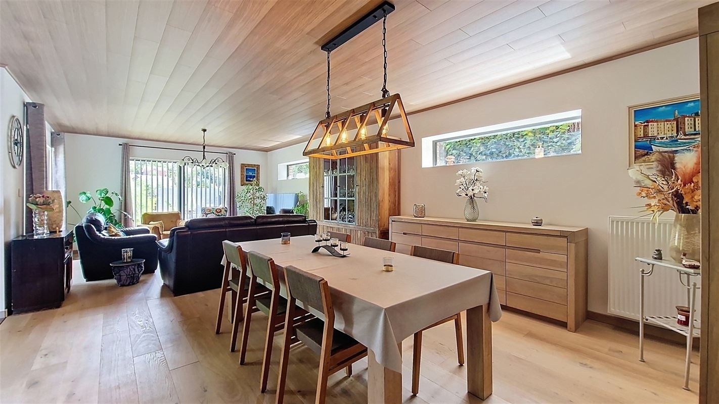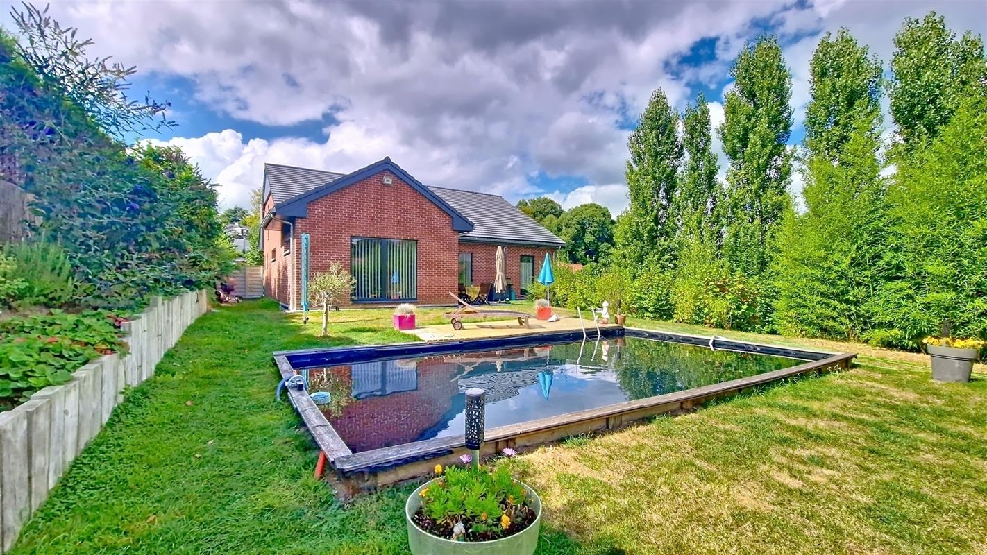 Située dans une rue calme et proche de toutes commodités, cette villa 4 façades plain-pied est l’endroit idéale pour poser vos valises. Au rez de chaussée donc : un hall d’entrée desservant 1 wc, 1 vestiaire et un grand séjour, une cuisine complètement équipée ainsi qu’une arrière cuisine faisant également office de buanderie. Un hall de nuit desservant 2 chambres (possibilité d'aménager 2 chambres supplémentaires au grenier), une salle de bains tout confort. Le séjour donne accès à un grand jardin avec piscine et un coin cuisine extérieure pour profiter des beaux jours ! La maison dispose d’un sous-sol entièrement aménagé en 2 pièces de stockage, un bureau, une seconde salle de bains, un atelier ainsi qu’un grand garage. Le tout est entièrement chauffé.