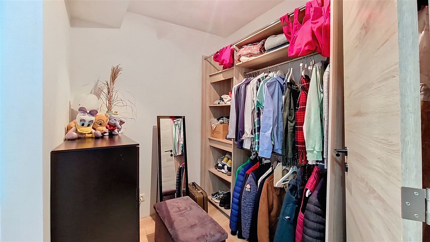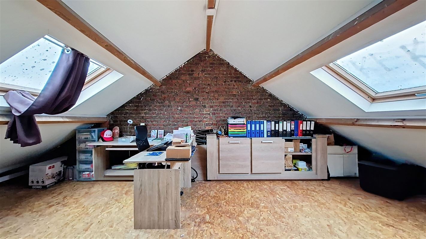 La salle de bains se compose d'une douche, une baignoire, un lavabo et un WC. L'étage a été agencé en une belle chambre avec son espace dressing, un débarras et un coin bureau.