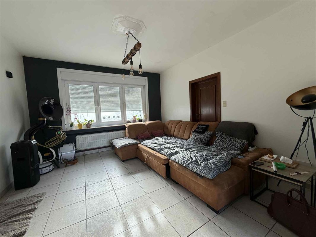 Celle-ci est composée : d'un hall d'entrée, un living, une cuisine équipée, une salle de bain, 3 chambres, un grenier, caves, un garage et un jardin.