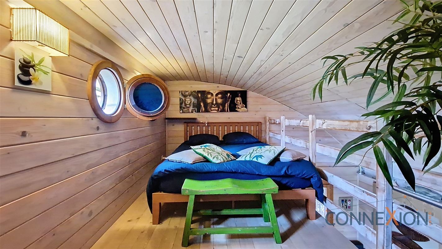Une seconde annexe, de type tiny house, servant de second gîte comprend : salle de douche, salon, une chambre mezzanine et terrasse privative.