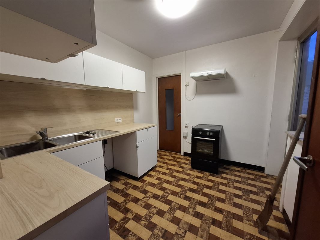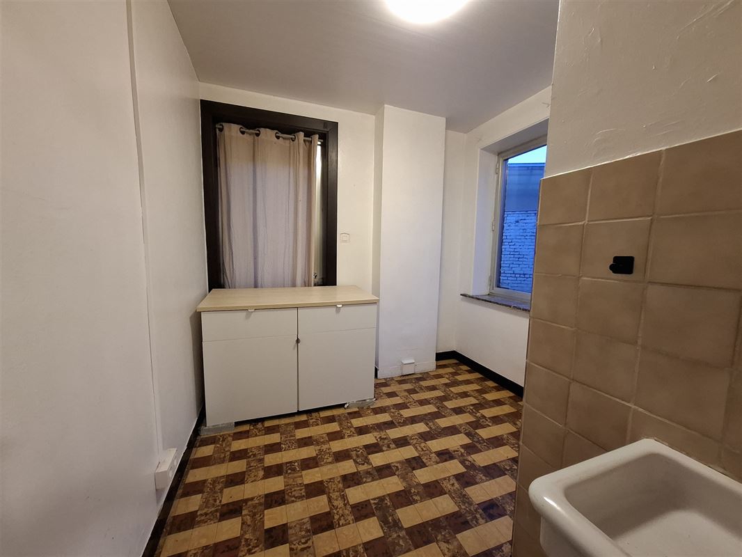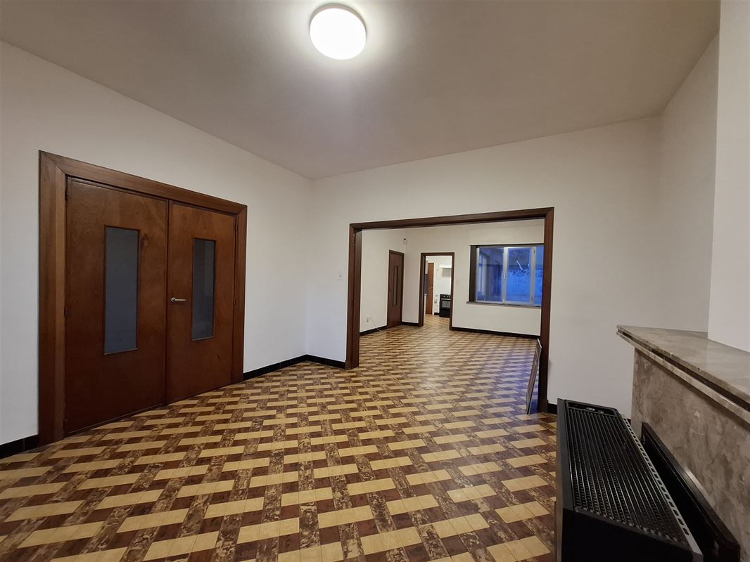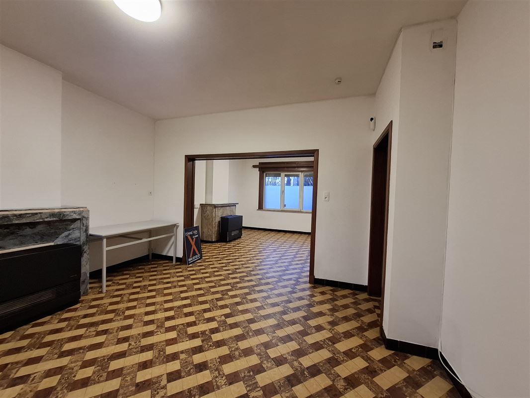 Celle-ci est composée : d'un hall d'entrée, 1 living, 1 salle à manger, 1 cuisine semi équipée, 1 buanderie, 1 cour, 2 chambres, 1 salle de bains, 1 cave et 1 grenier.