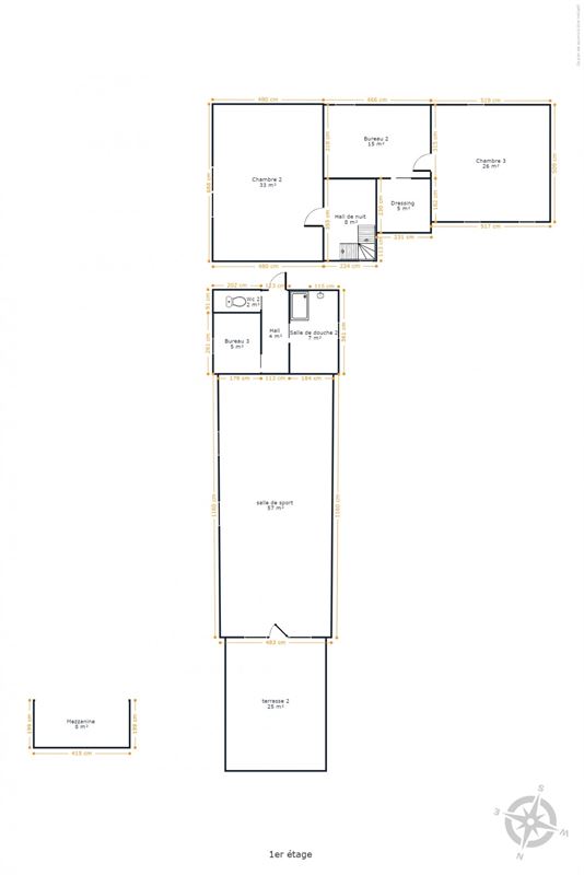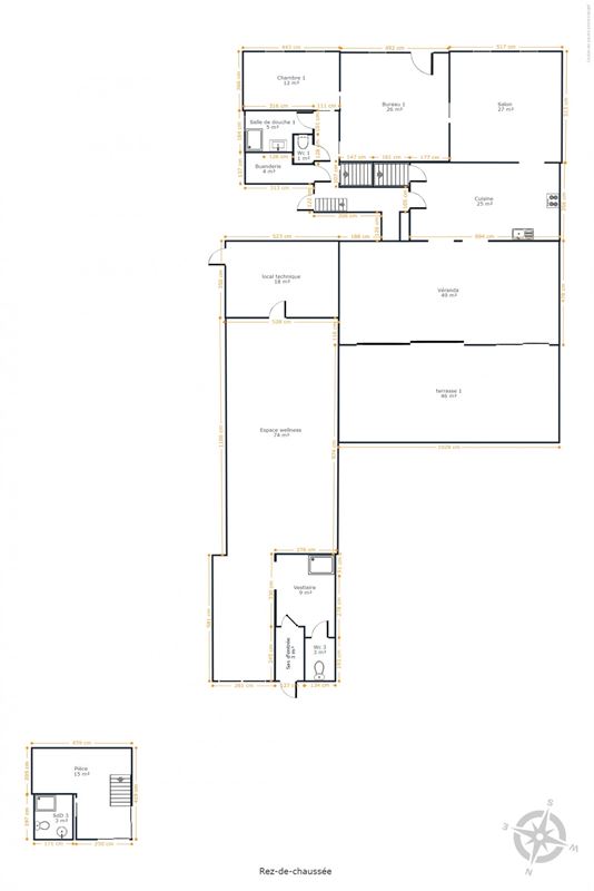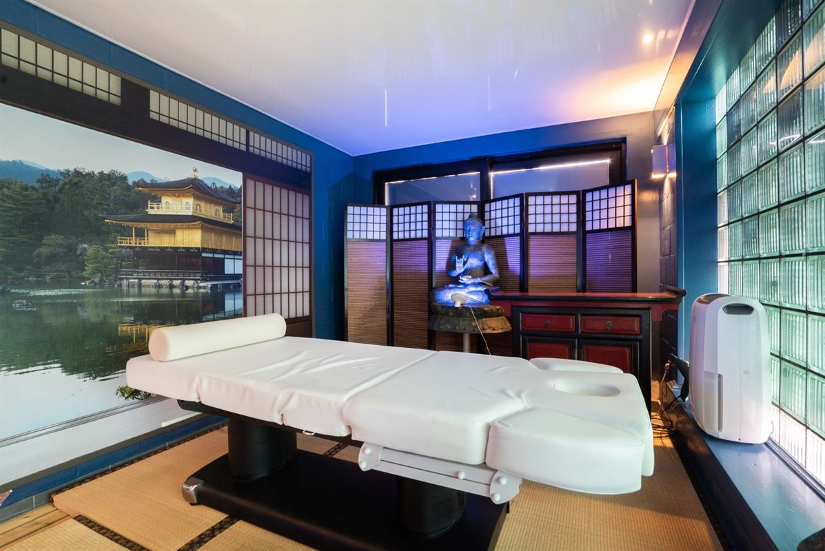 L’annexe du rez-de-chaussée : espace wellness de 73 m² comprenant piscine intérieure chauffée, sauna, hammam, jacuzzi, salle de massage, douche, vestiaire, wc , espace technique.