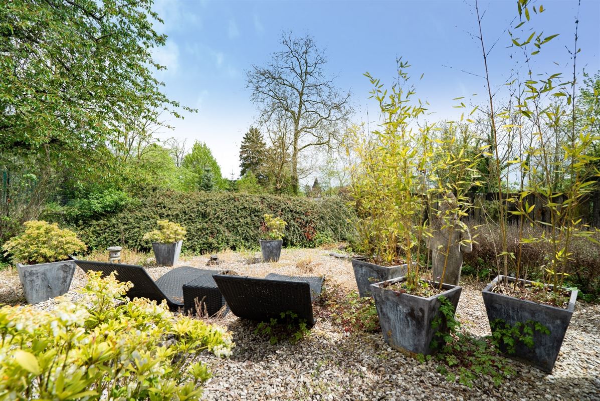 A l’extérieur : grand passage latéral, belle terrasse et grand jardin pour la partie habitation.