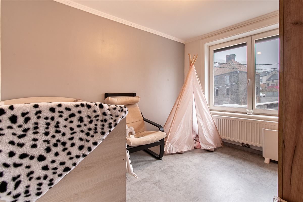 L’étage propose également une seconde chambre et un bureau ou chambre d’appoint. Une cour ainsi qu’un garage avec porte électrique complètent le bien.
