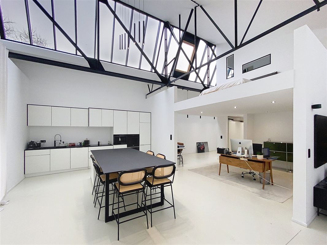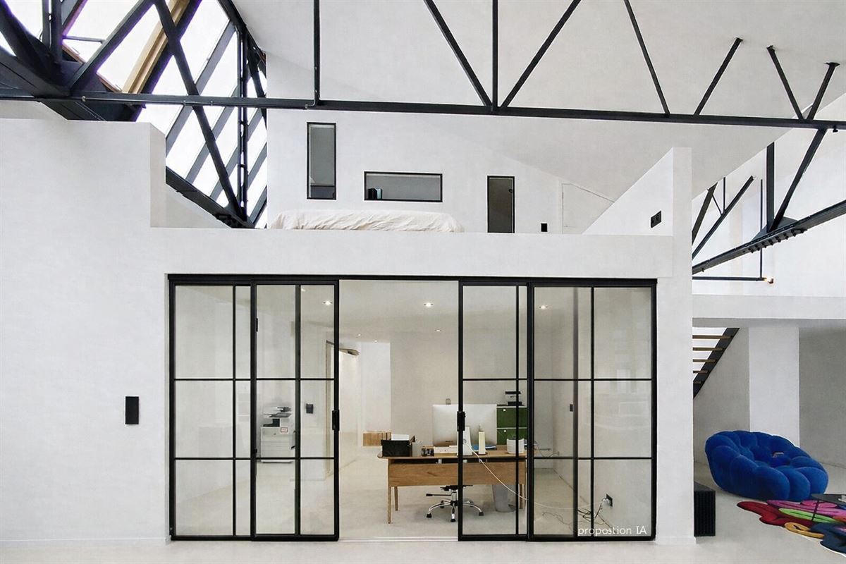 Dès l’entrée, les volumes impressionnent : hauteurs sous plafond remarquables, charpente métallique apparente, verrières industrielles, lumière naturelle omniprésente… L’espace respire, circule et séduit instantanément. Le loft propose un vaste séjour, une cuisine ouverte au design épuré, une buanderie, un spacieux espace bureau qui peut être aménagé en suite parentale, une mezzanine accueillant l’espace nuit, la salle de douche et un dressing.
