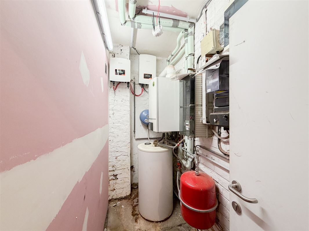 Derrière cette maison à appartement se trouve un logement collectif de 5 studios en ordre d’urbanisme ainsi qu’un garage. On y retrouve également une salle de douche commune et un WC commun.