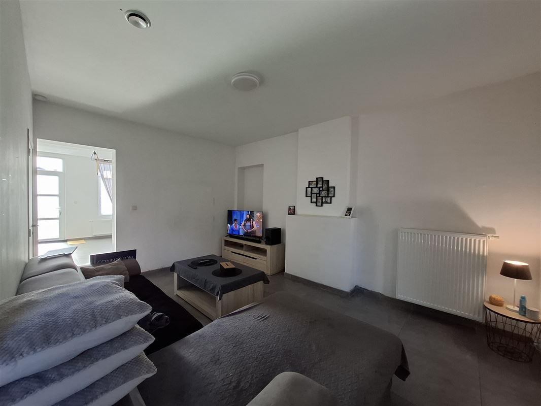 Celle-ci se compose de : 1 living, 1 salon, 1 cuisine (non équipée), 1 salle de bain, 2 chambres, 1 cave, 1 grenier et 1 jardin.