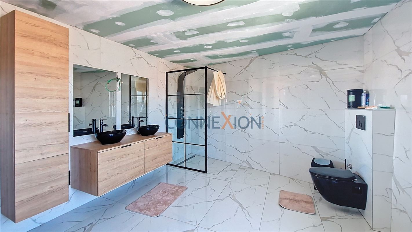 Au premier étage, le bien dispose de trois chambres, dont une spacieuse chambre de ± 35 m², ainsi que d’une salle de bain équipée d’une baignoire et d’une douche.