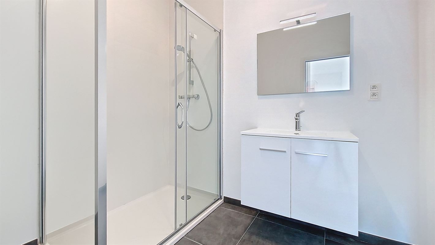 Profitez d'un grand et lumineux séjour ouvert sur une cuisine full équipée, d'une salle de douches moderne et d’un WC séparé. Une lumineuse chambre avec un espace dressing.