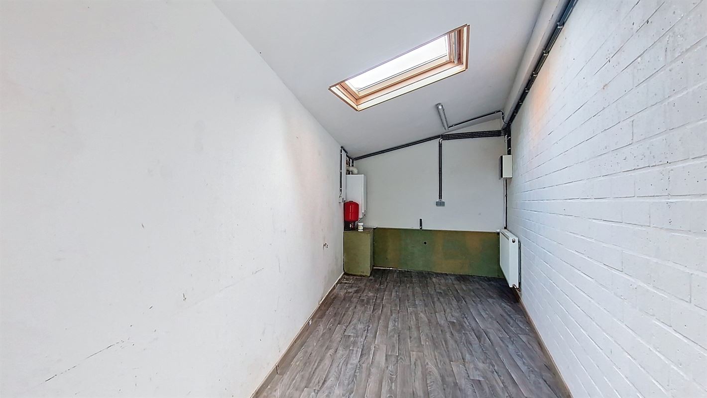 Elle se compose d'un hall d'entrée, d'un WC séparé, d'un living avec vue sur le jardin, d'une cuisine équipée, d'une buanderie.