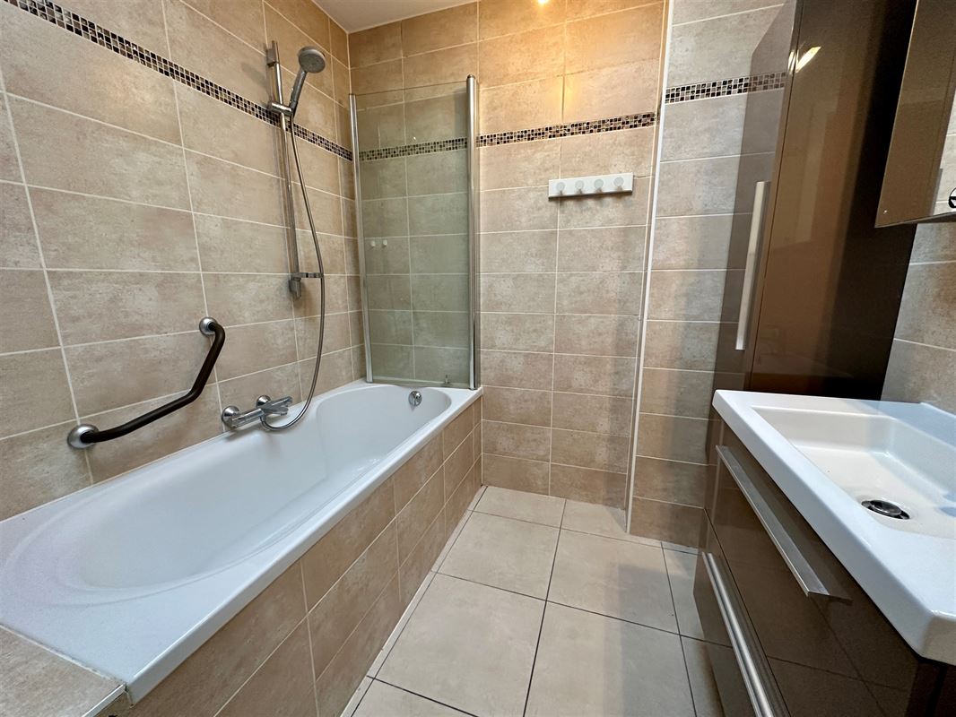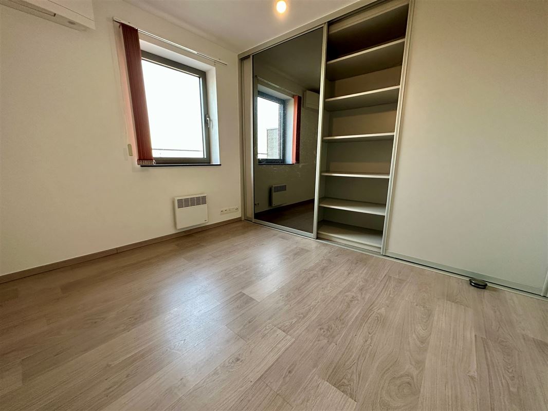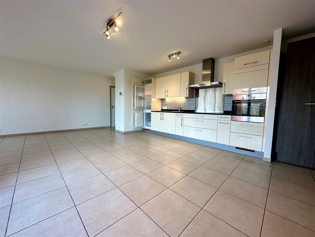Il se compose comme suit : spacieux living (46,5 m²) avec cuisine équipée et sa terrasse, une salle de bains (4 m²) et wc séparé, 2 chambres (12,5 et 11,5 m²) dont l'une avec balcon. Le bien est loué avec un garage de 15m².