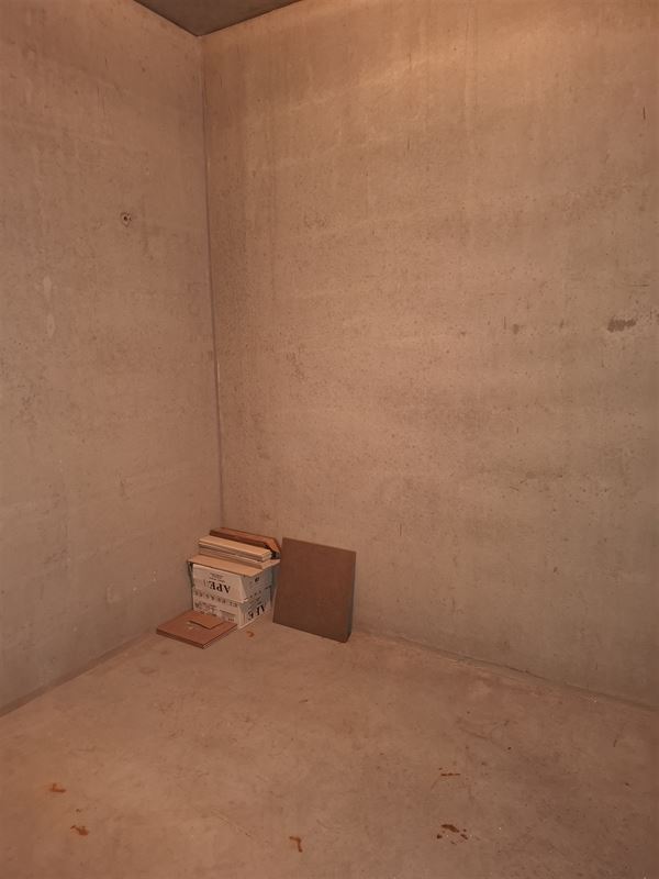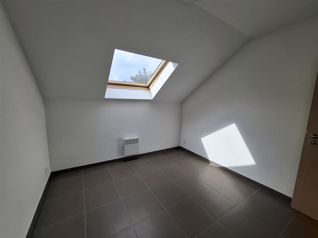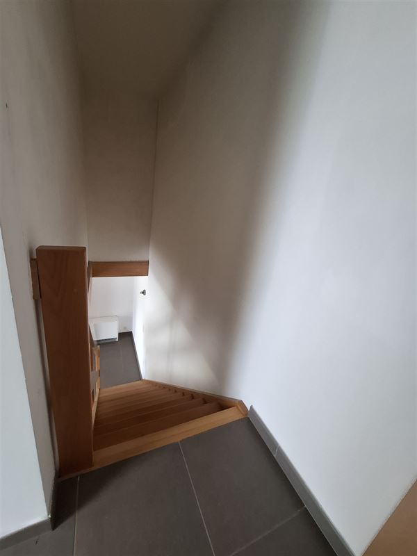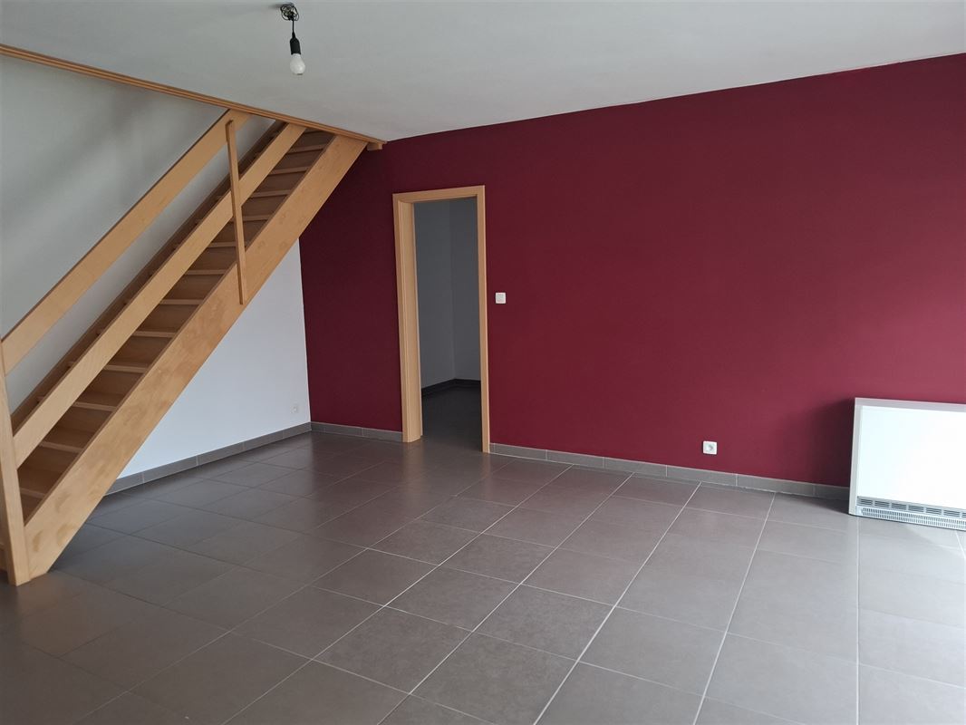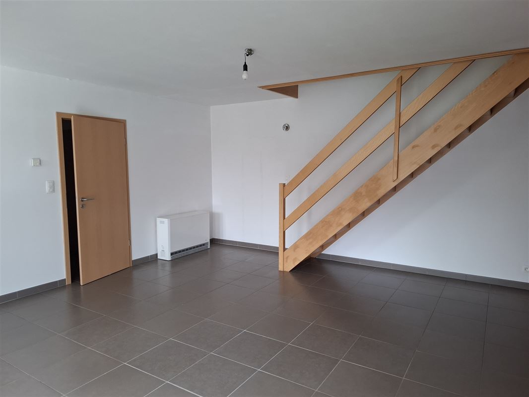 Celui-ci est composé : d'un hall d'entrée, un living avec cuisine équipée ouverte sur celui-ci, une chambre au rez-de-chaussée, salle de bain et petite chambre à l'étage, 1 cave et un emplacement de parking intérieur.